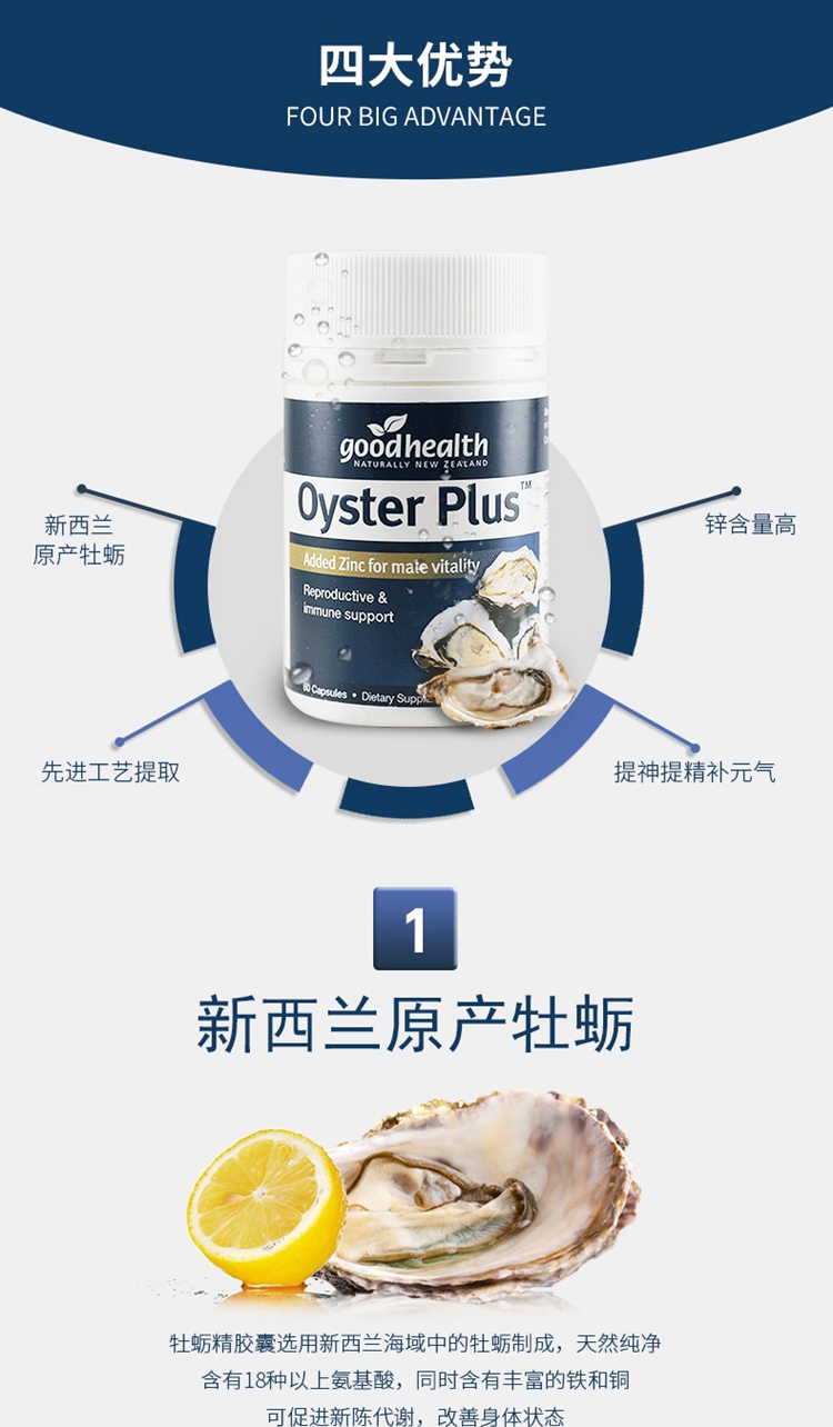 【香港直邮】新西兰好健康Good health 牡蛎精生蚝精胶囊60粒