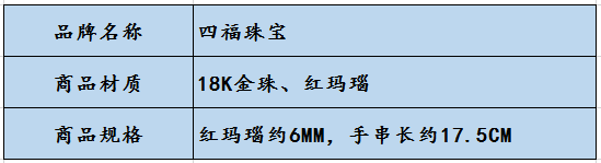 您所在的位置:首页 > 珠宝首饰  > 水晶玛瑙 > 手链  > 四福珠宝18K金珠红玛瑙手链手串