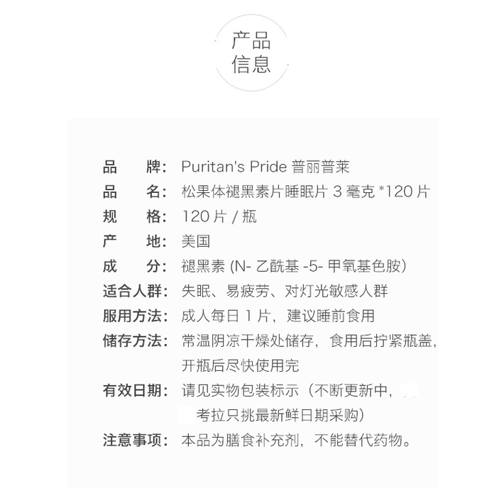 您所在的位置:首页 > 营养保健  > 营养成分 > 褪黑素  > 美国 普丽普莱褪黑素片3mg*120粒 帮助睡眠