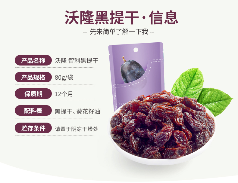 沃隆黑提干80g/袋 休闲零食蜜饯果脯果干风味小吃办公室葡萄干