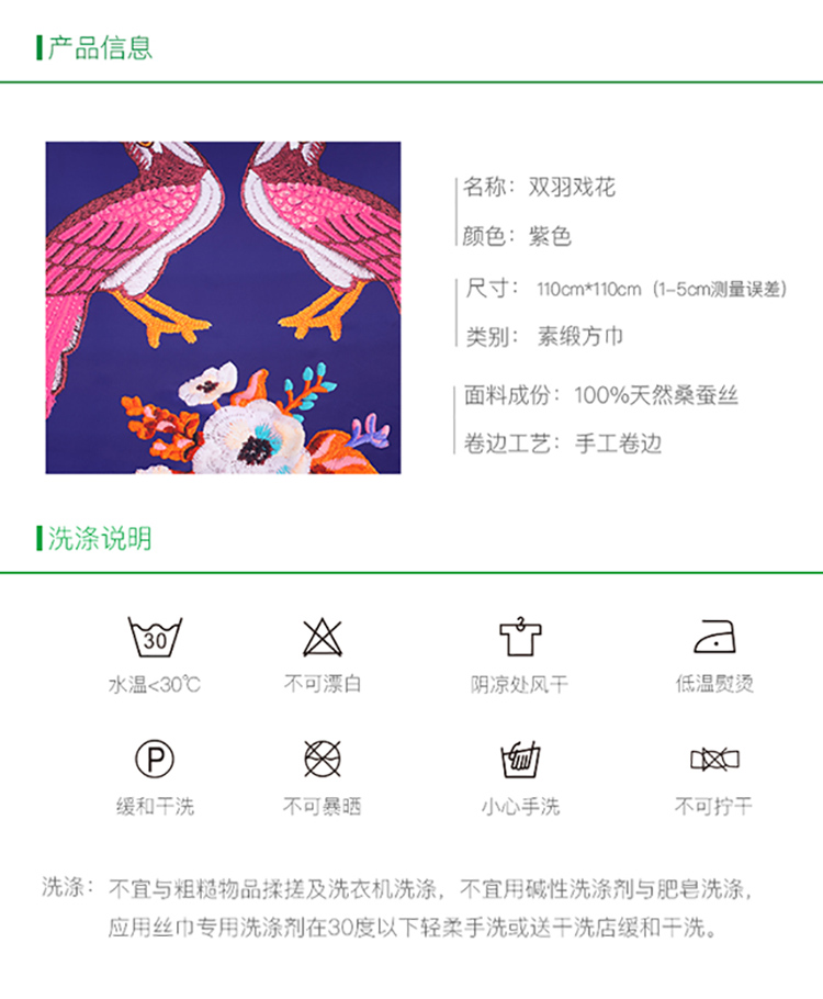 您所在的位置:首页 > 服饰内衣  > 服饰配件 > 女士丝巾/围巾/披肩  > 沐泠 双羽戏花 100%天然桑蚕丝素绉缎大方巾 ML-90830821