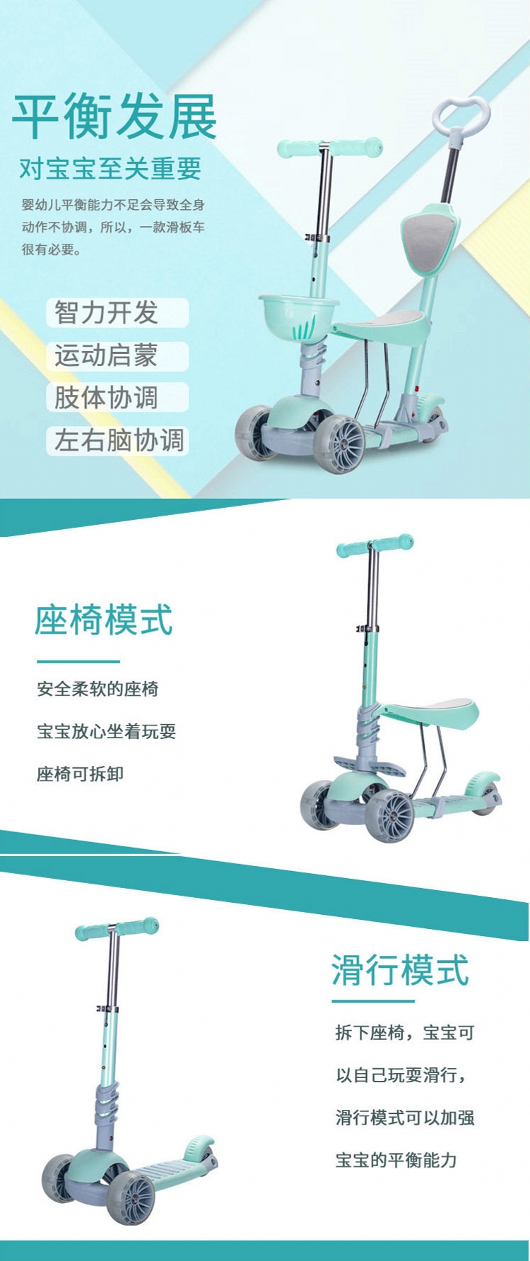 您所在的位置:首页 > 母婴用品  > 玩具 > 车床椅  > 飞陆新款五合一带闪光儿童滑板车三轮手推折叠婴儿车学步童车