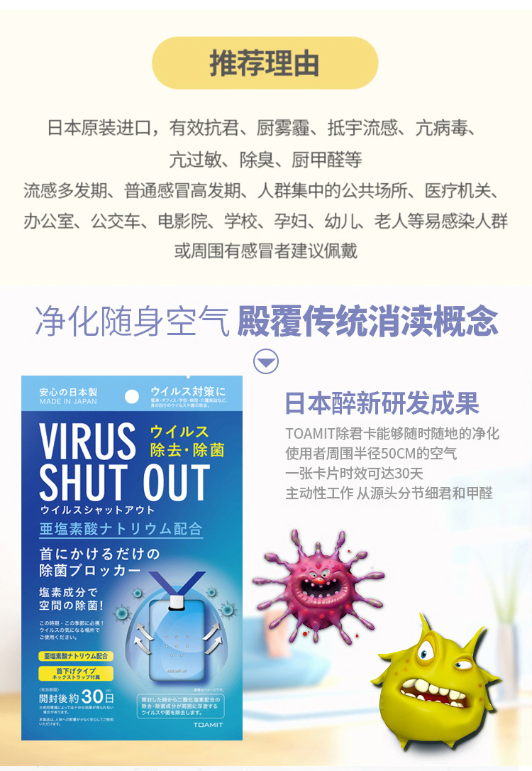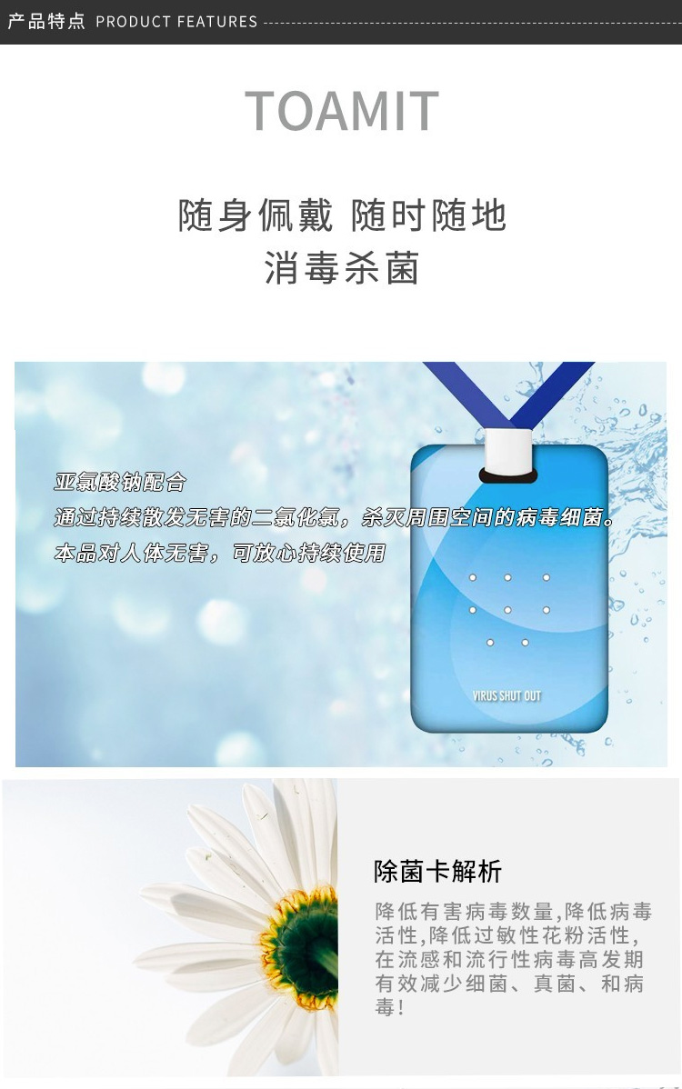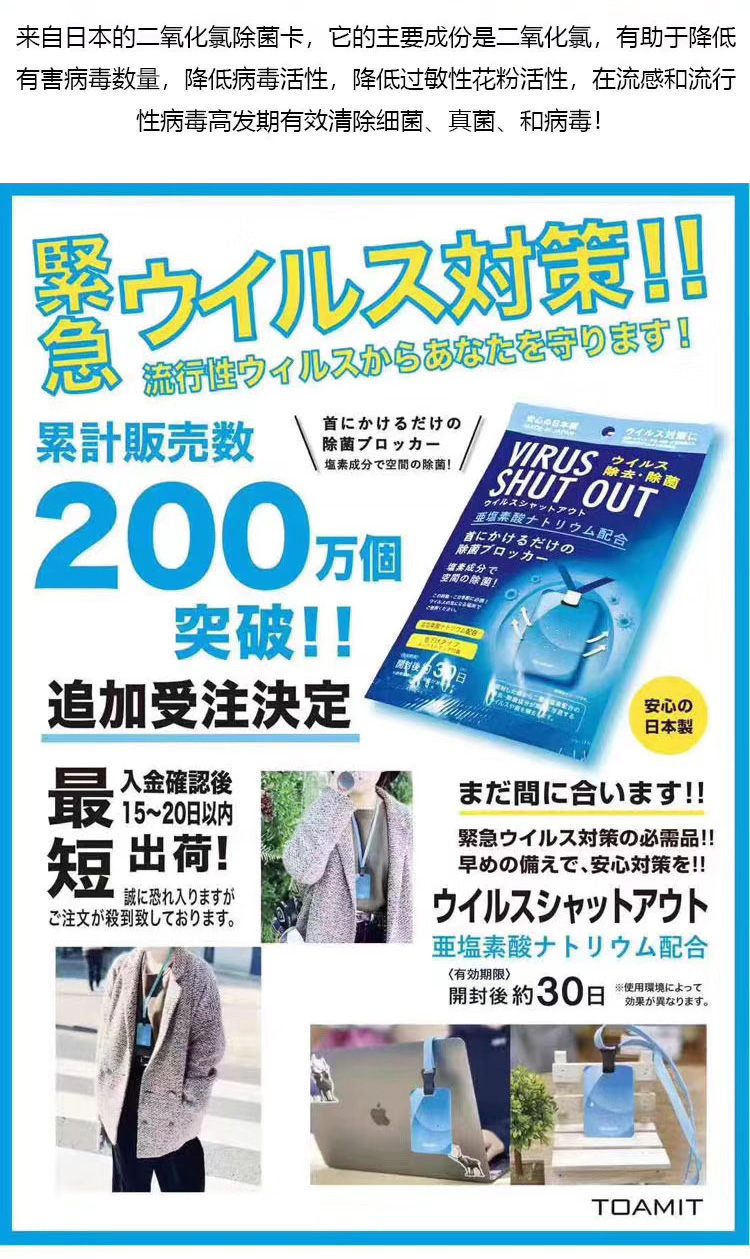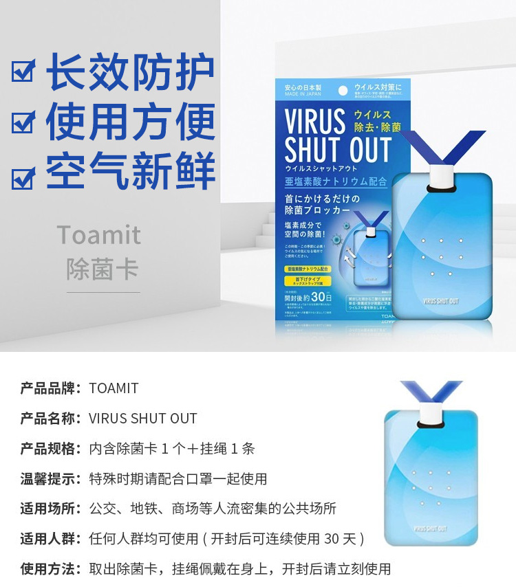 【授权商品】【一般贸易】日本TOAMIT便携除菌卡消毒卡