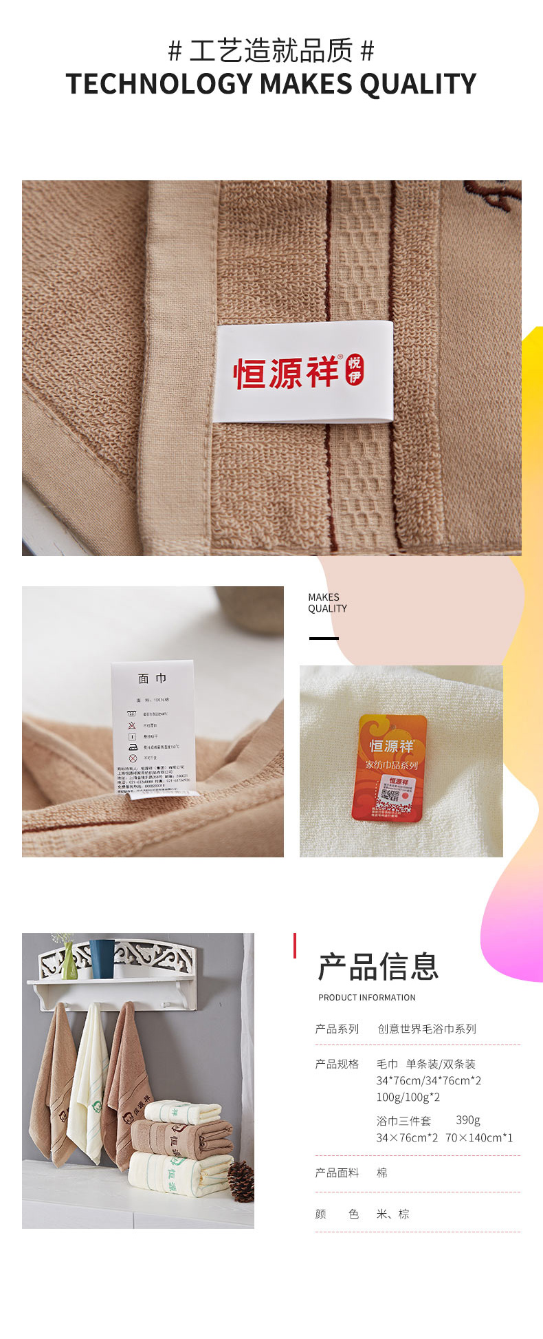 恒源祥 HYX034MJ创意世界毛巾双条装(棕) 34*76cm*2