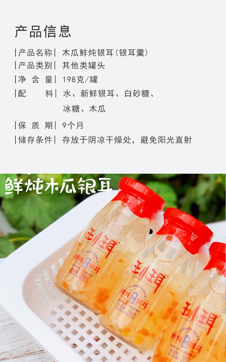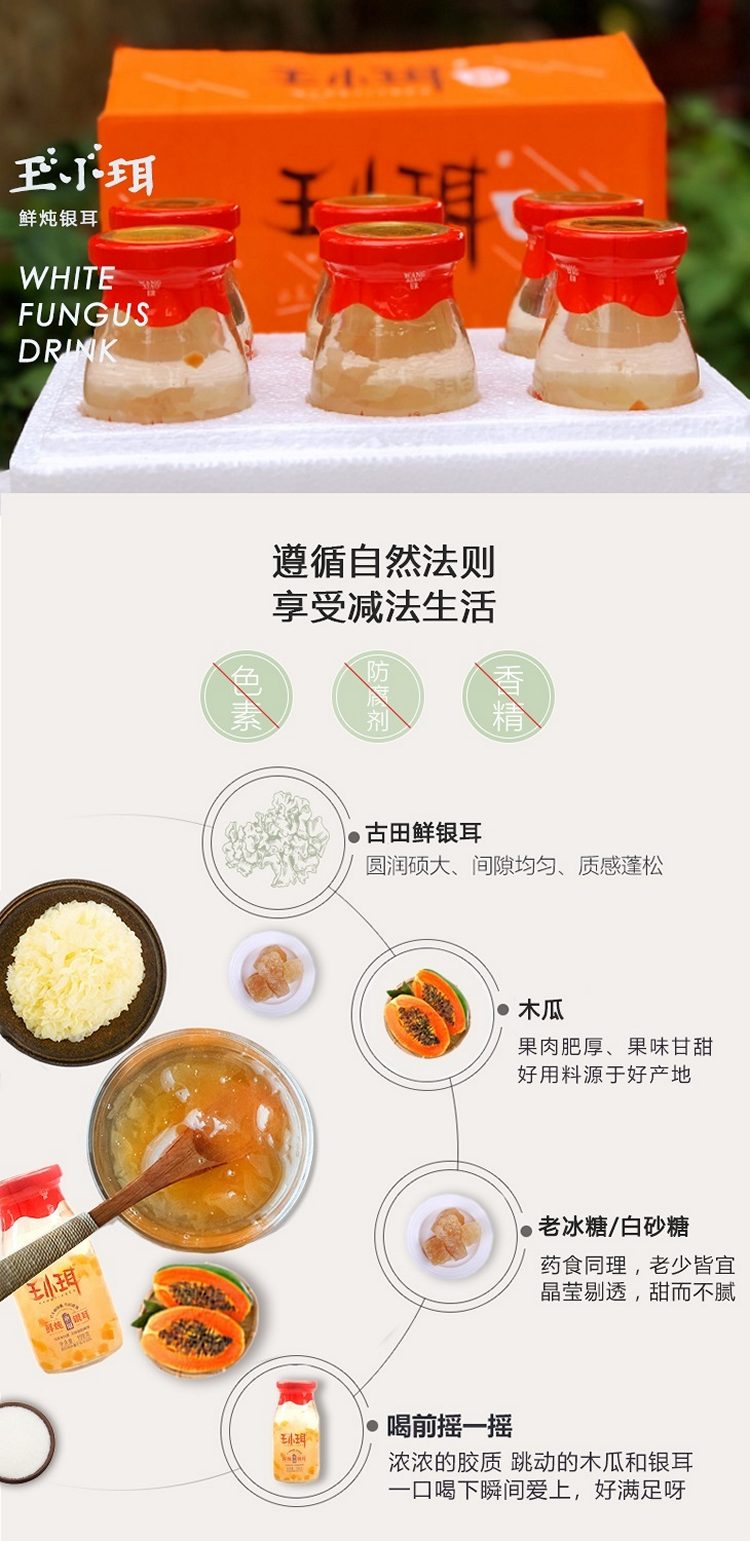 鲜珥家 木瓜味王小珥木瓜鲜炖银耳饮料木瓜味银耳羹1盒*6瓶*198毫升