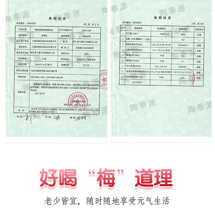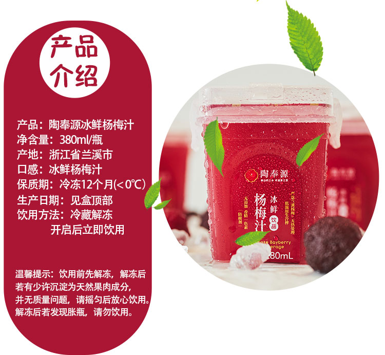 陶奉源冰鲜杨梅汁 (380ml*6泡沫箱)