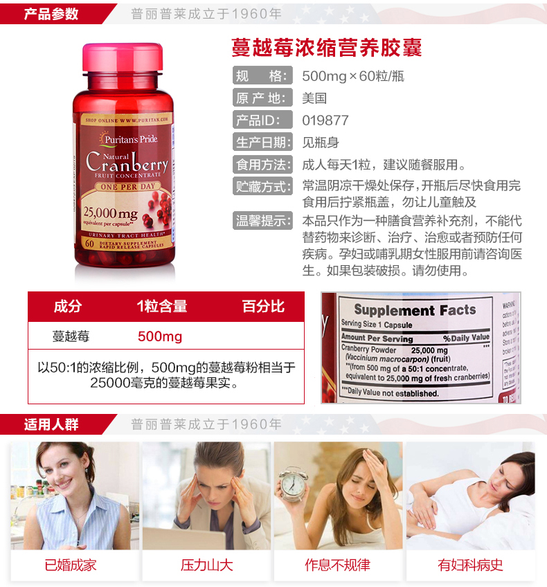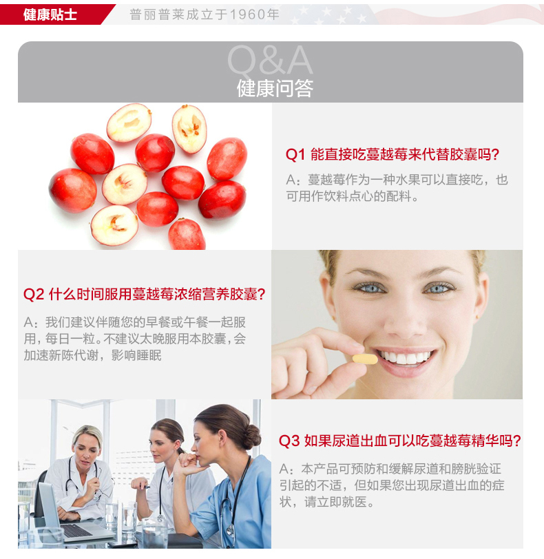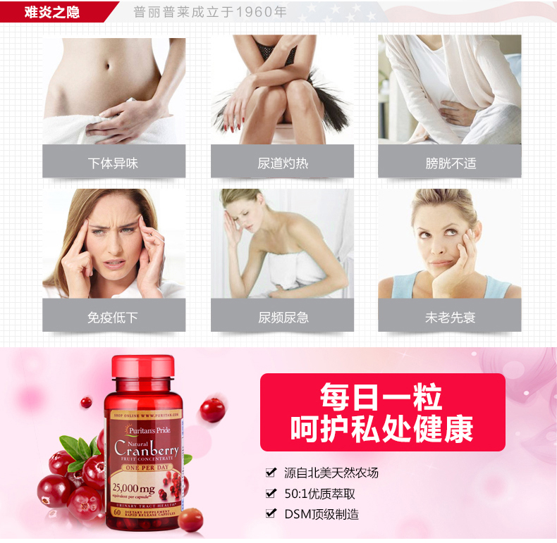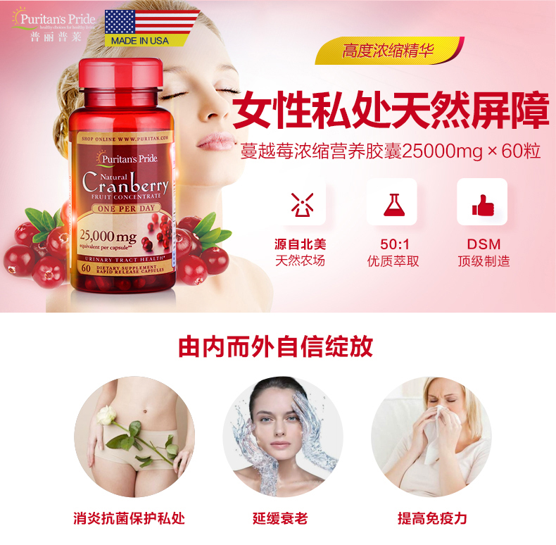 普丽普莱 呵护女性 蔓越莓浓缩营养胶囊500mg60粒