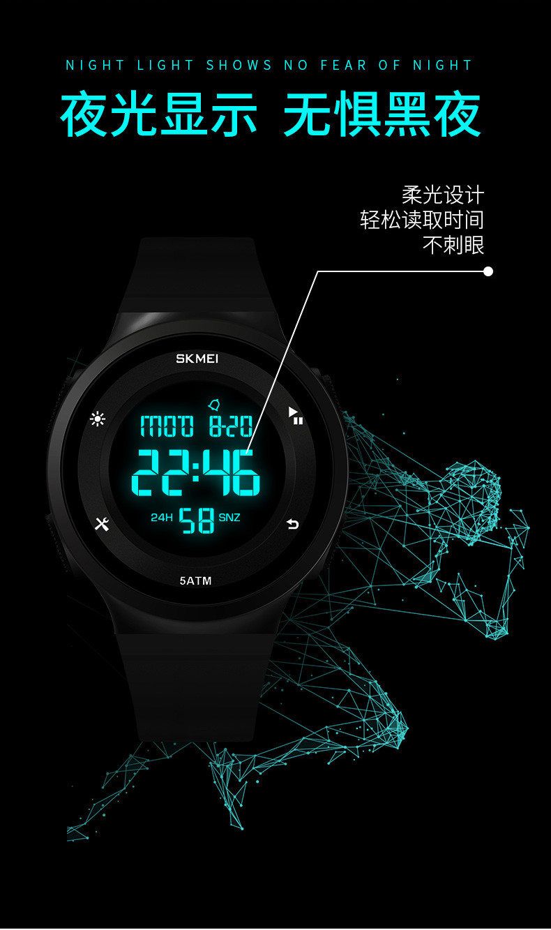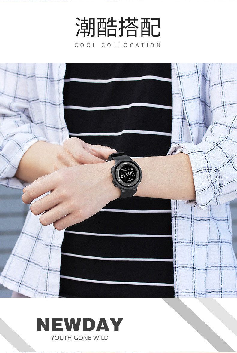 时刻美手表男初中学生青少年时尚多功能夜光2019女新款防水电子表1445