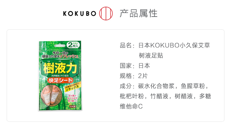 日本原产KOKUBO小久保足贴祛湿贴艾草树液(2片装)20g