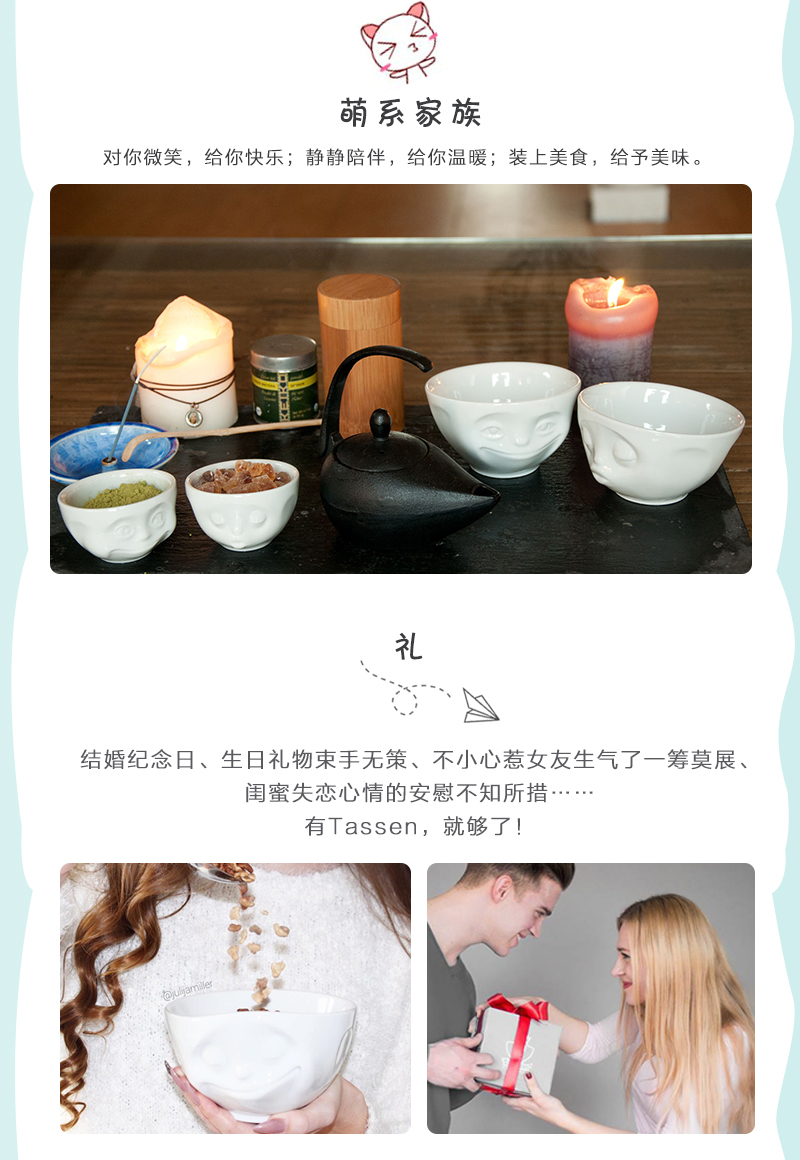 【授权商品】德国原产Fiftyeight Tassen卡通表情咖啡碗2件套200ml亲亲与微笑