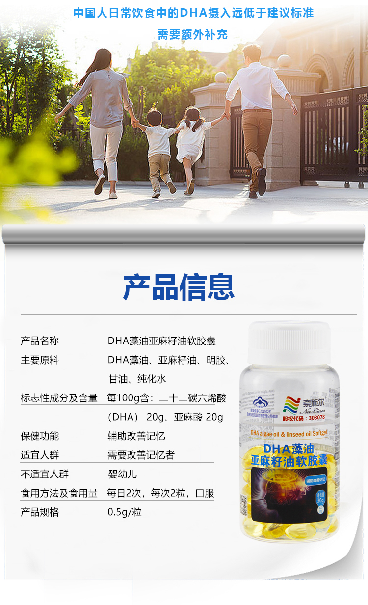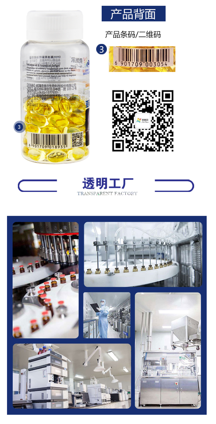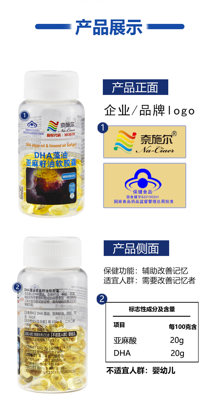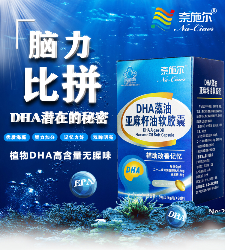 中国奈施尔DHA藻油亚麻籽油软胶囊60粒/瓶