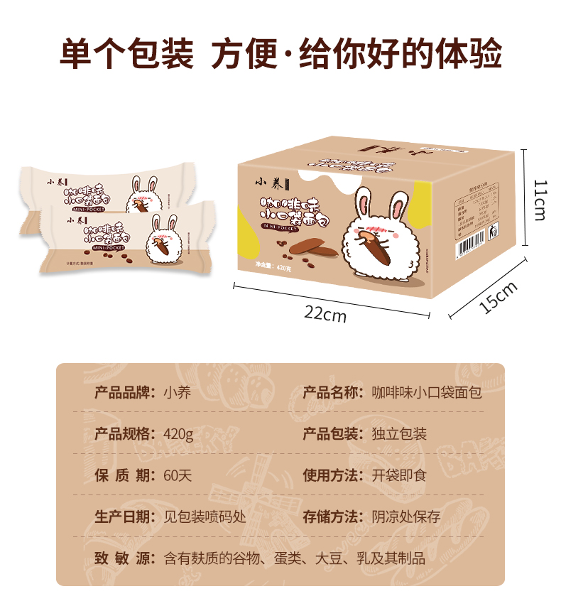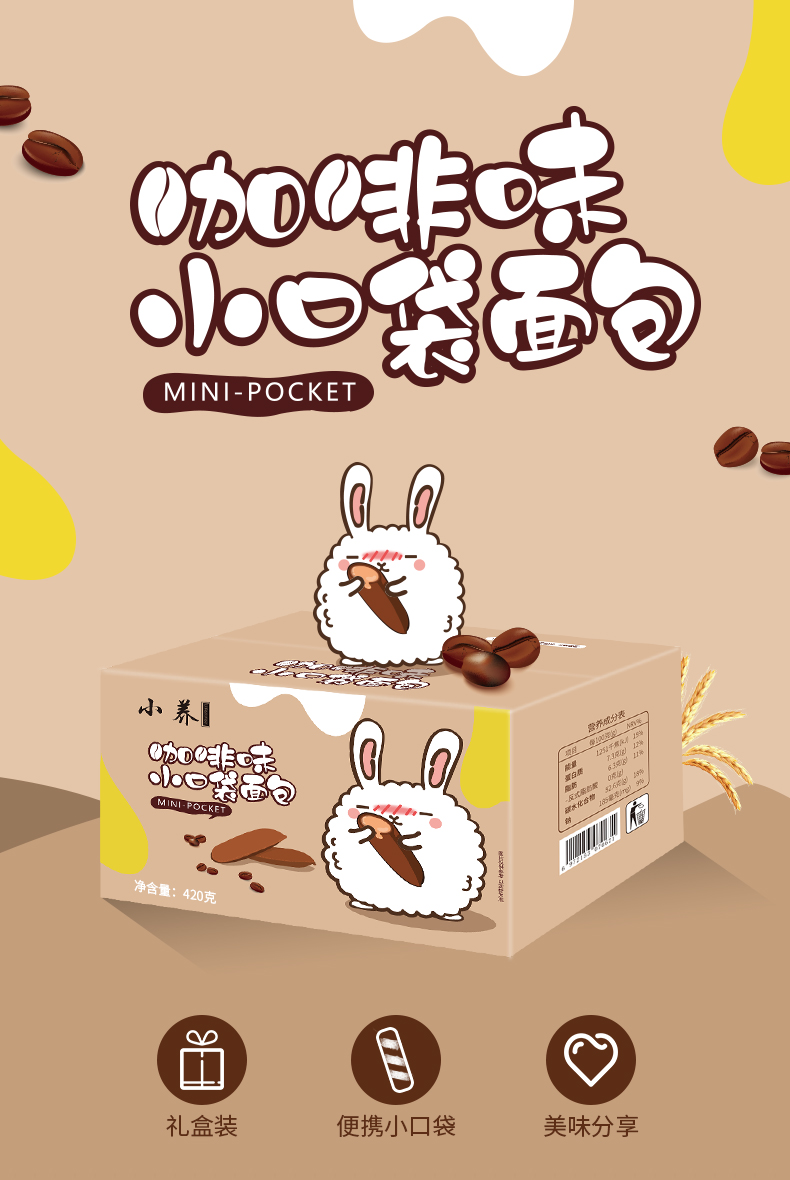 小养咖啡味小口袋面包糕点420g/箱