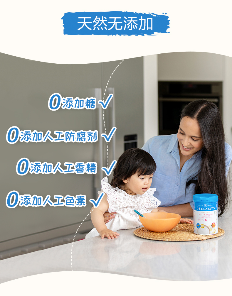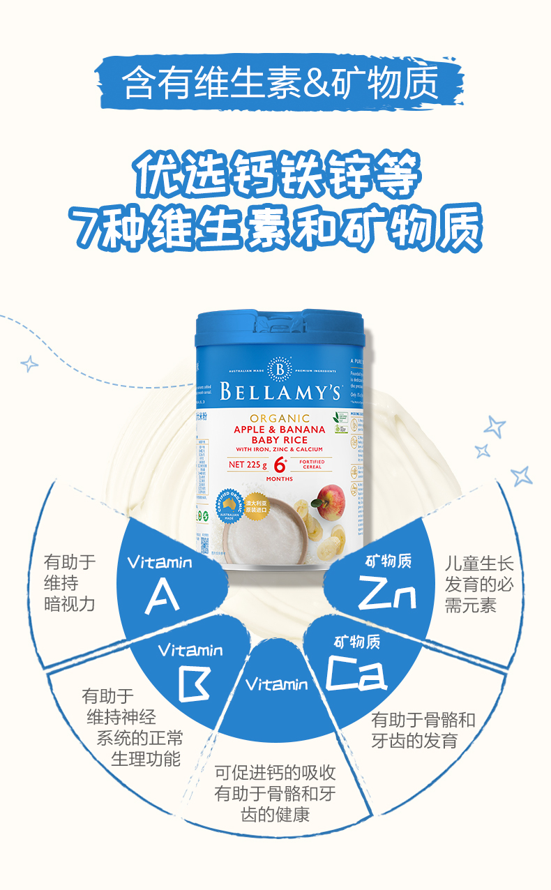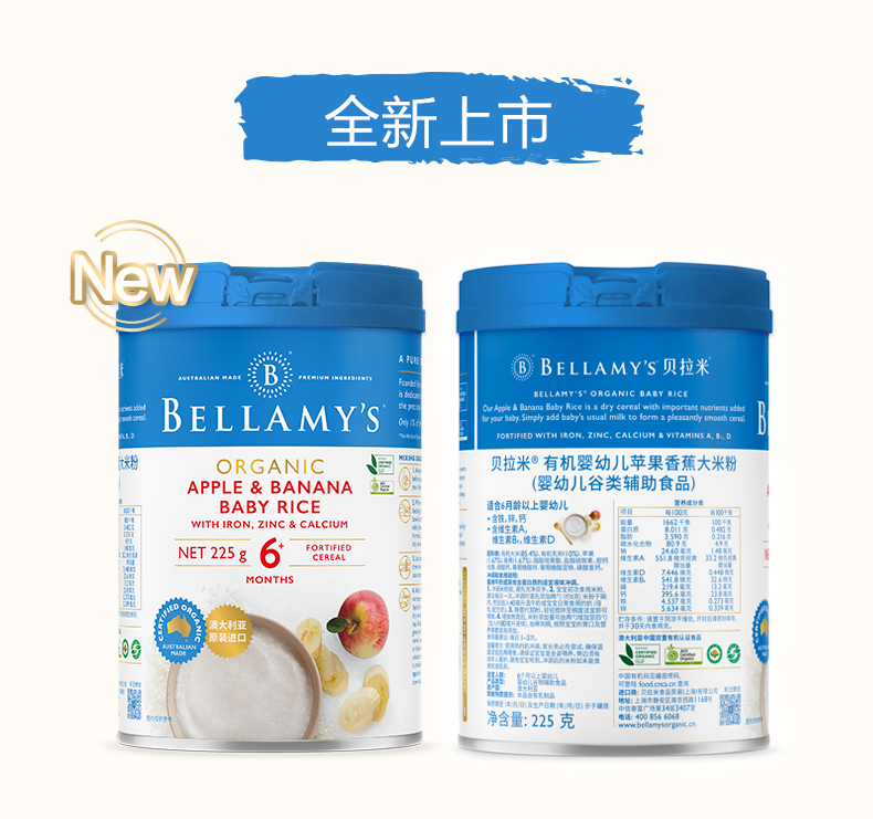 您所在的位置:首页 > 母婴用品  > 营养辅食 > 米粉/菜粉  > 澳洲进口 贝拉米有机高铁婴幼儿苹果香蕉大米粉225g