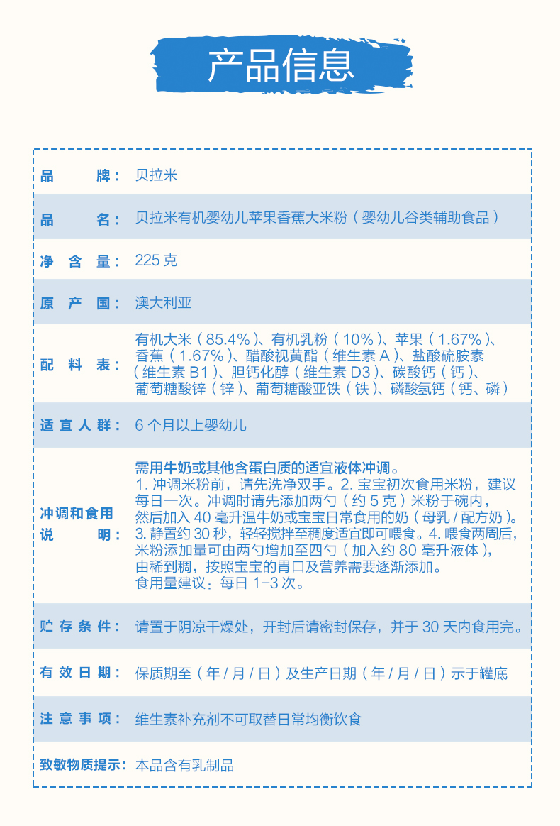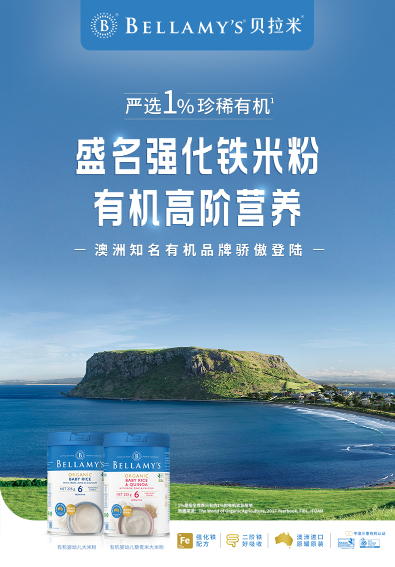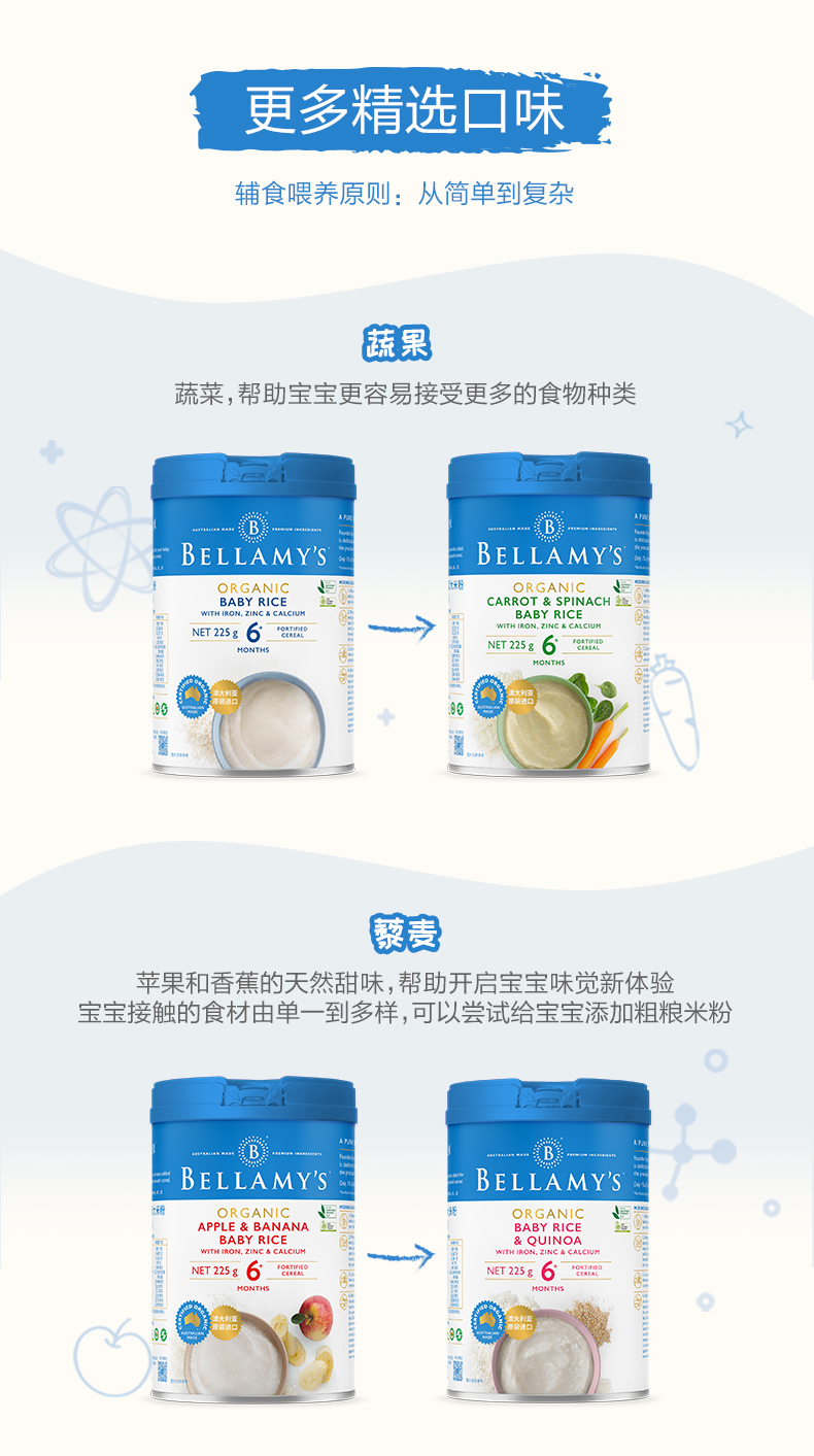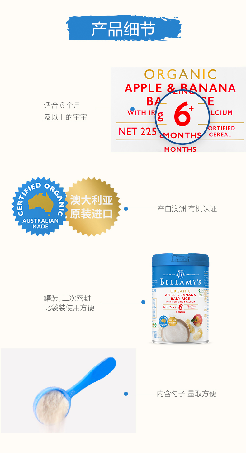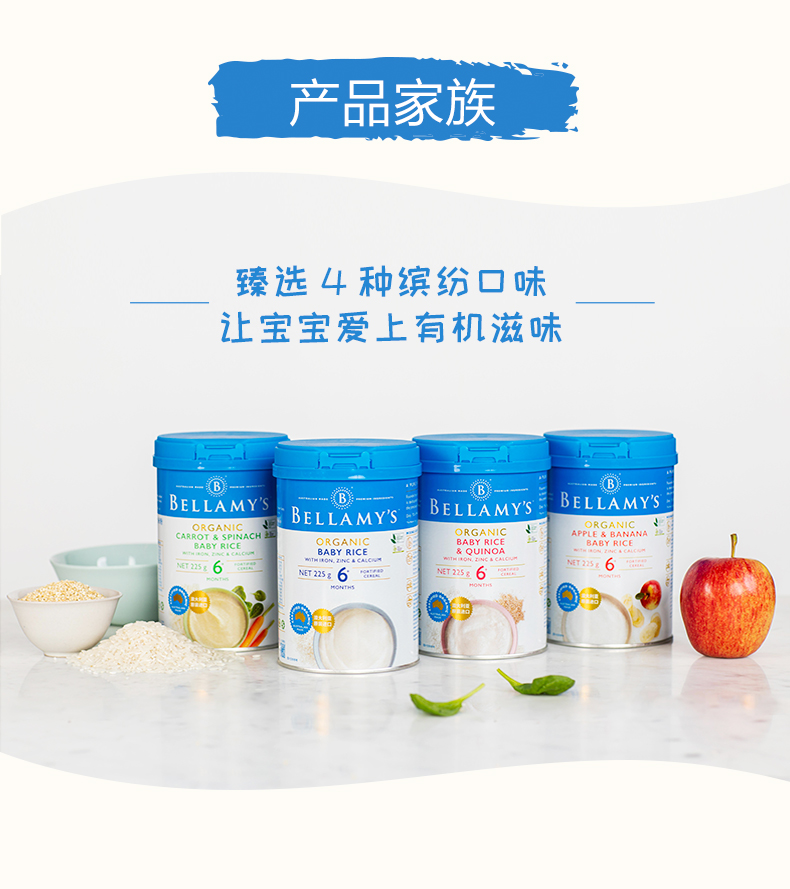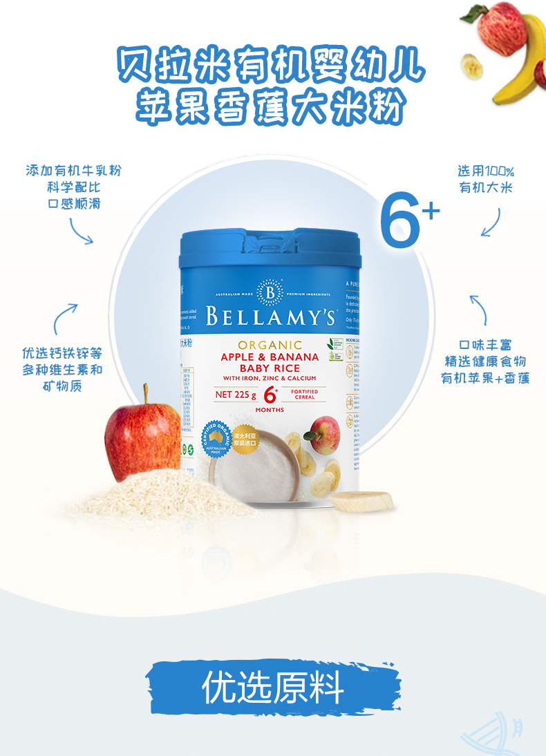 澳洲进口 贝拉米有机高铁婴幼儿苹果香蕉大米粉225g