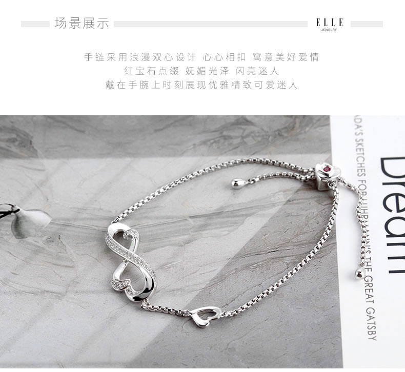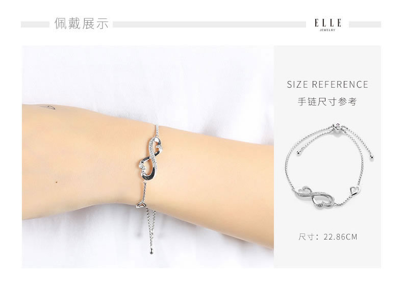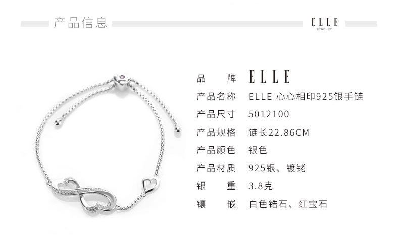 ELLE饰品心心相印925银镶锆石手链 23cm5012100