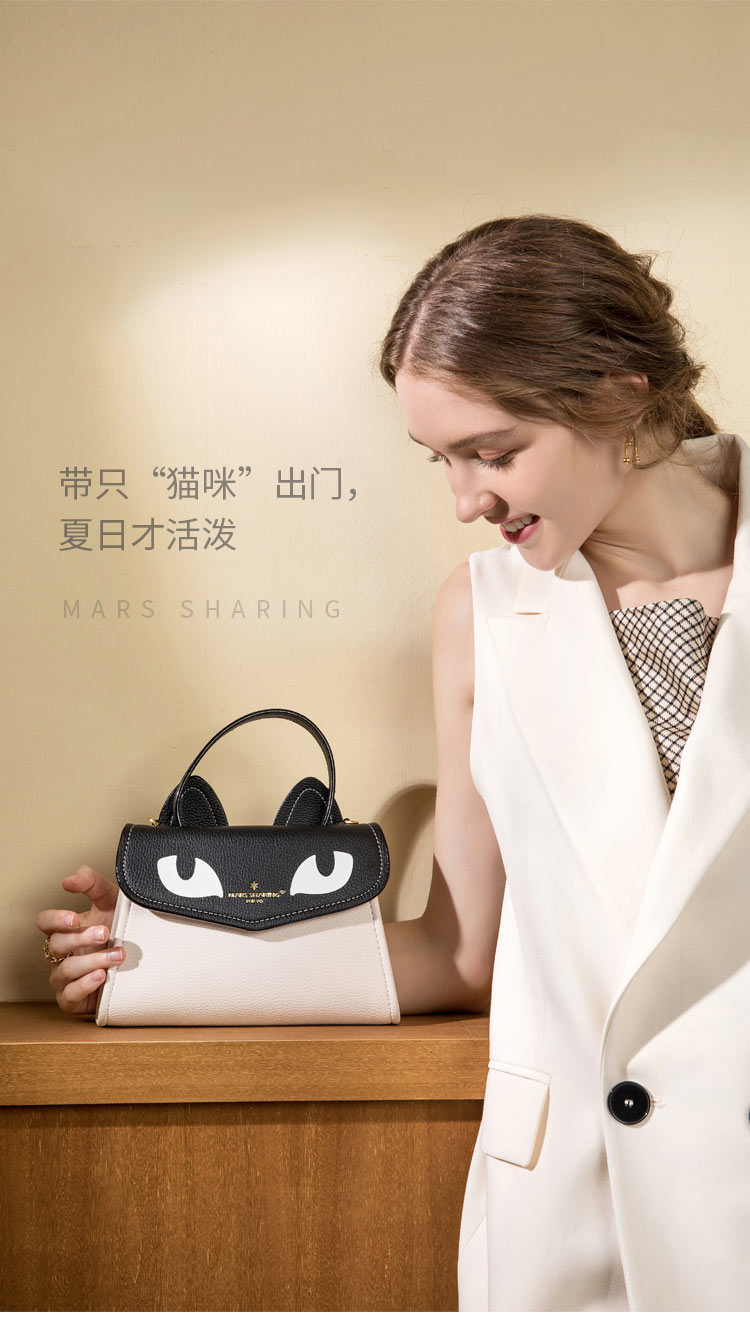 日本marssharing猫眼包 2020新款时尚百搭可爱手提包可手拎可单肩斜挎女包 橘色