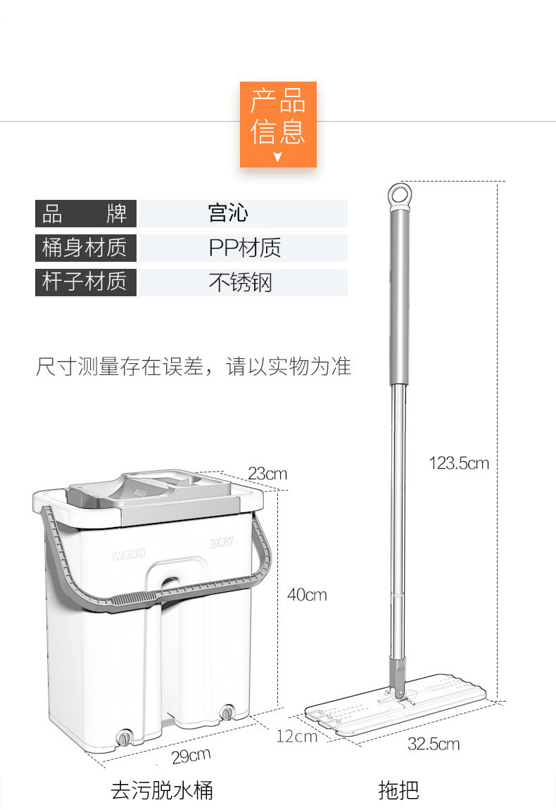 宫沁 刮刮乐拖把桶免手洗 替换拖把布3只装
