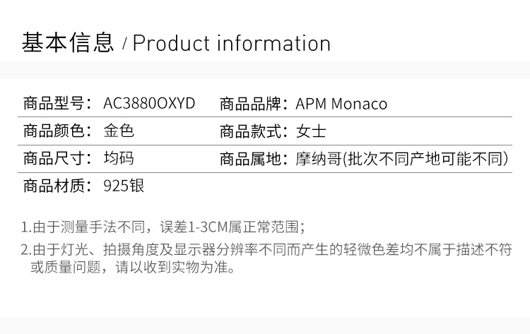 APM MONACO 女士金色字母项链 AC3880OXYD