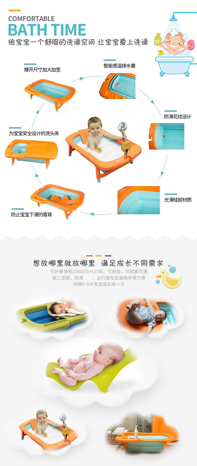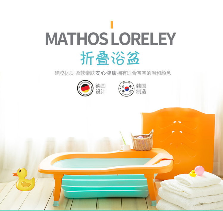 韩国原产Mathos Loreley婴儿浴盆澡盆便携感温可折叠浴盆 绿色 展开前:87.5*58*9cm,展开后:87.5*58*23cm