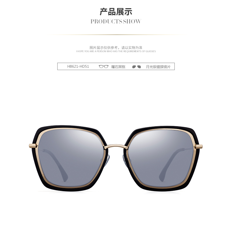海伦凯勒新款太阳镜女款 明星同款潮流时尚百搭偏光墨镜 H8621HD52(透明框+蓝镀膜-HD52)