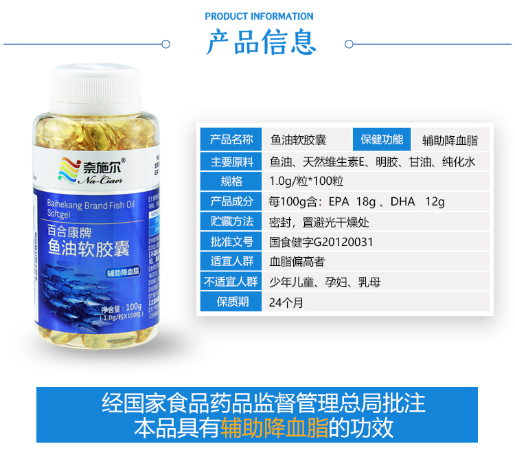 中国奈施尔鱼油软胶囊100粒/瓶