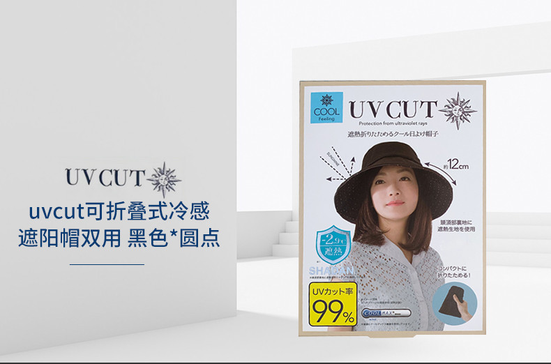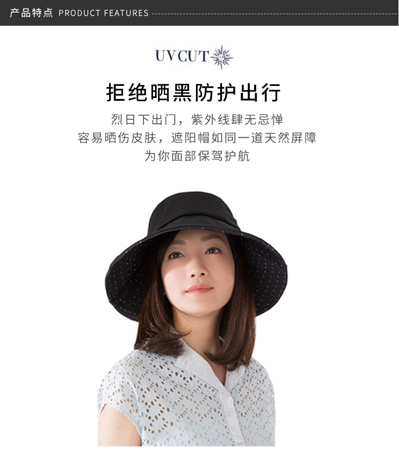 日本UVCUT双面遮阳渔夫帽99%防紫外线 黑色圆点