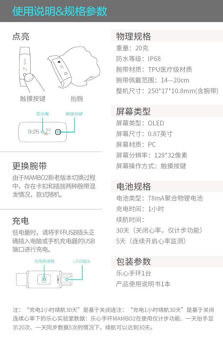 【授权商品】中国乐心手环mambo2晴空蓝