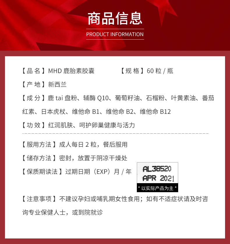 您所在的位置:首页 > 营养保健  > 营养健康 > 美容养颜  > 【新西兰直邮】MHD鹿胎精华浓缩胶囊 女红润调理养颜滋补鹿血胎盘素