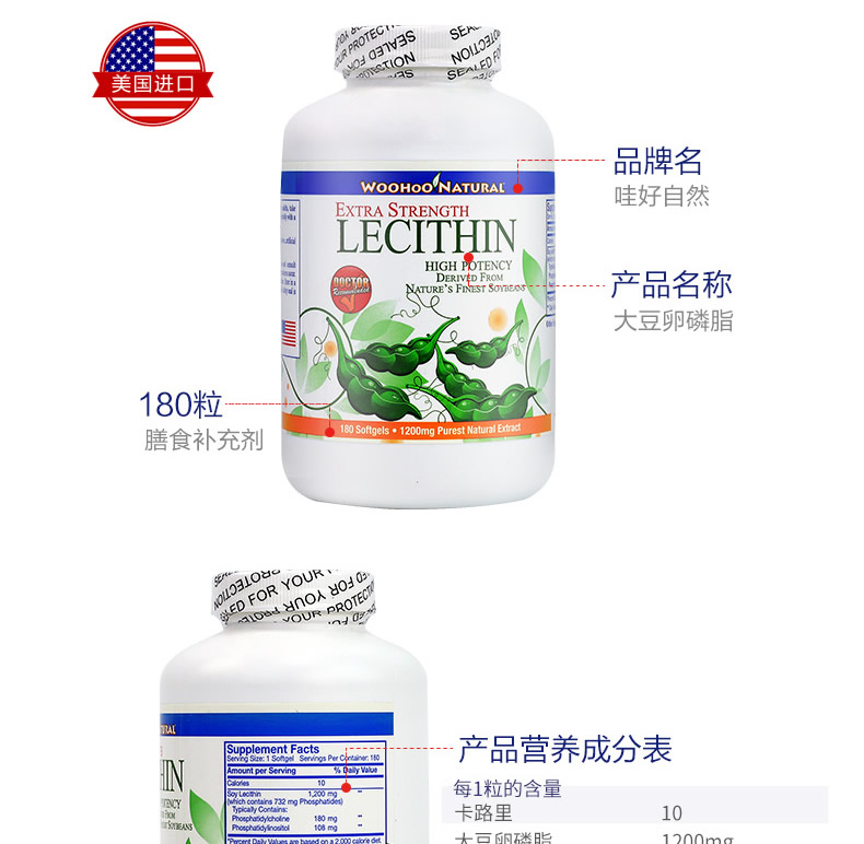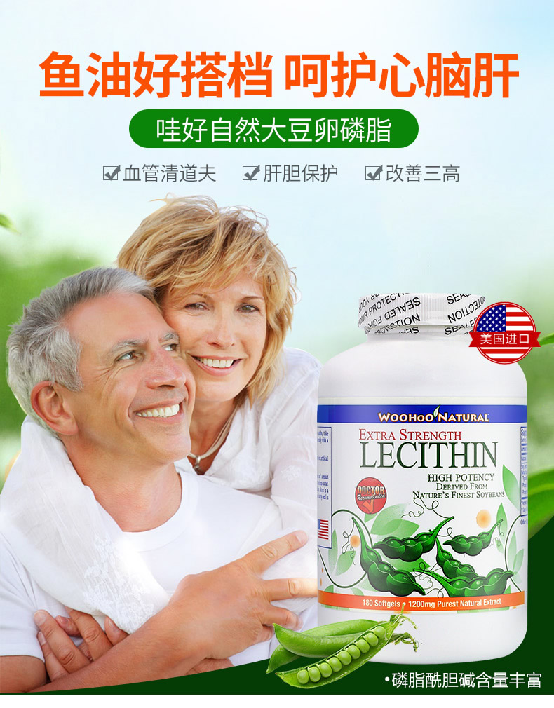 哇好自然美国原装进口大豆卵磷脂软胶囊血管清道夫清血管保健品