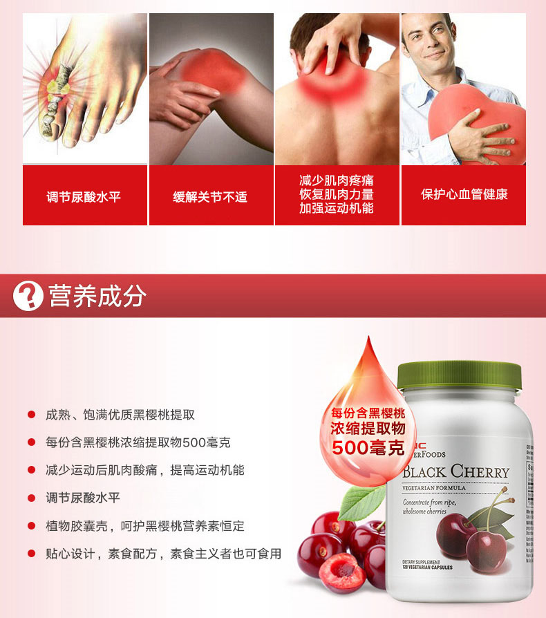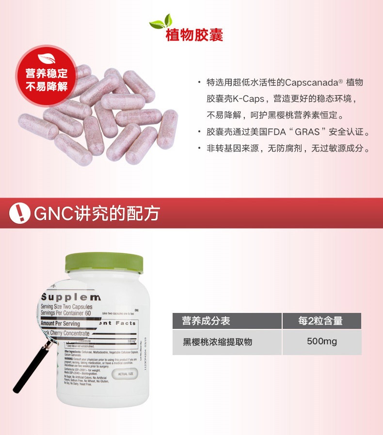 美国健安喜GNC黑樱桃精华胶囊(120粒)