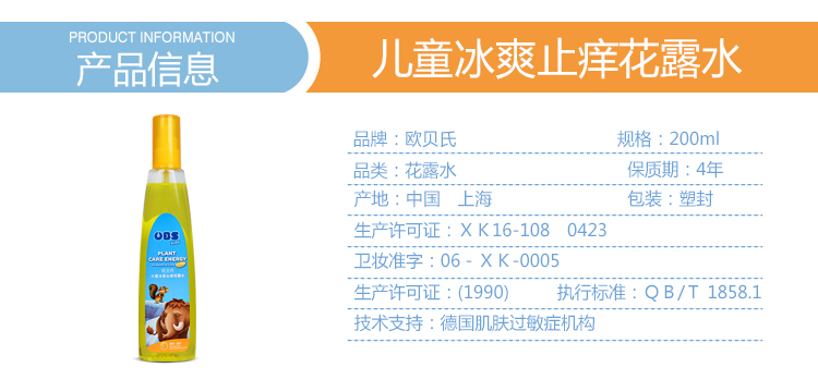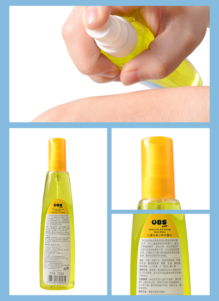 德国欧贝氏儿童冰爽止痒花露水2瓶装防蚊祛痱200ml*2瓶