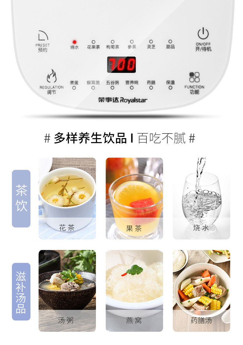 您所在的位置:首页 > 家用电器  > 厨房小电 > 养生壶/煎药壶  > 荣事达养生壶YSH1760