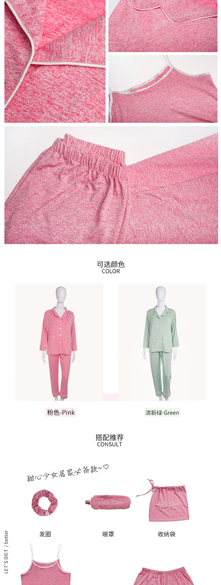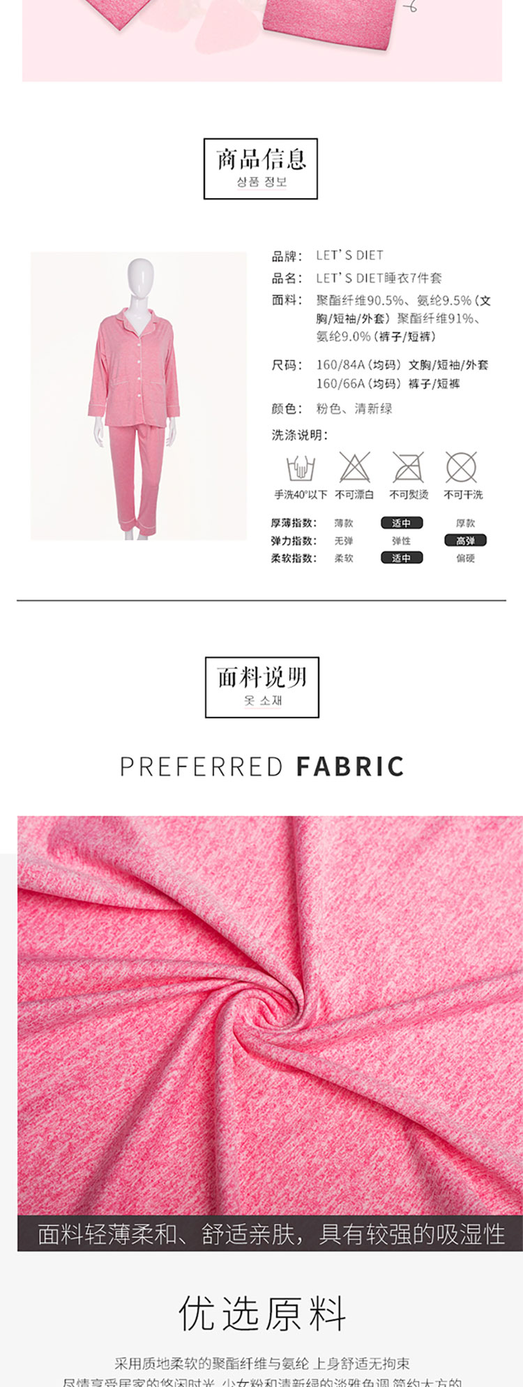 【授权商品】【女神必备】韩国Let's diet 睡衣七件套(绿)