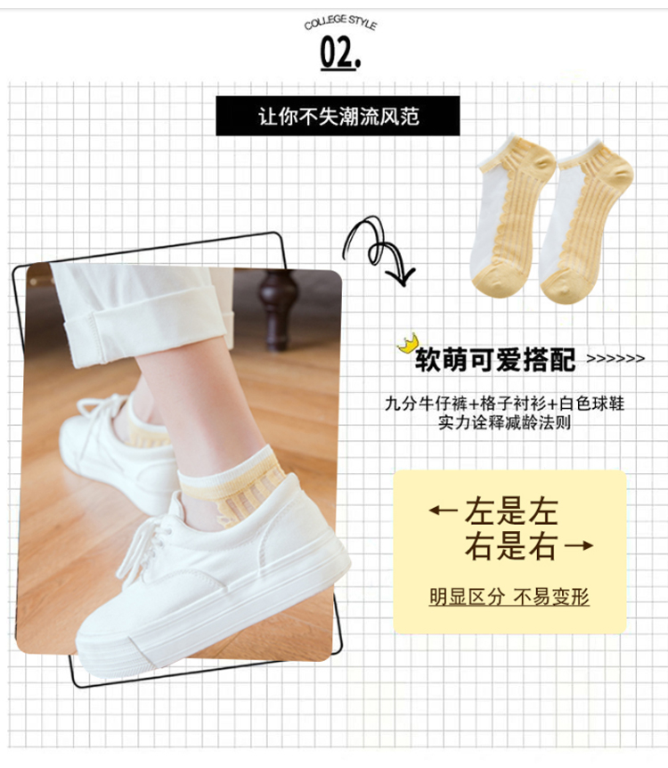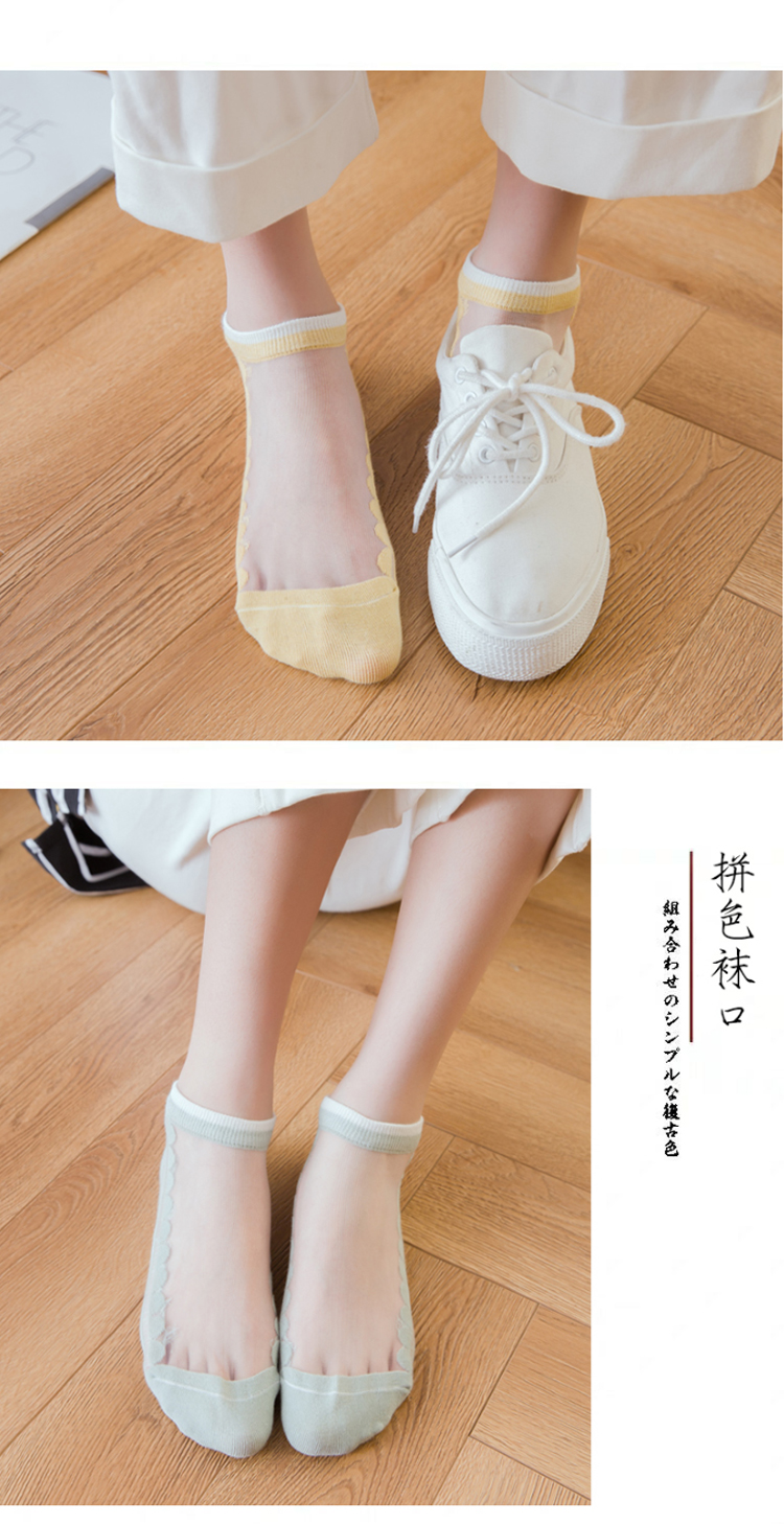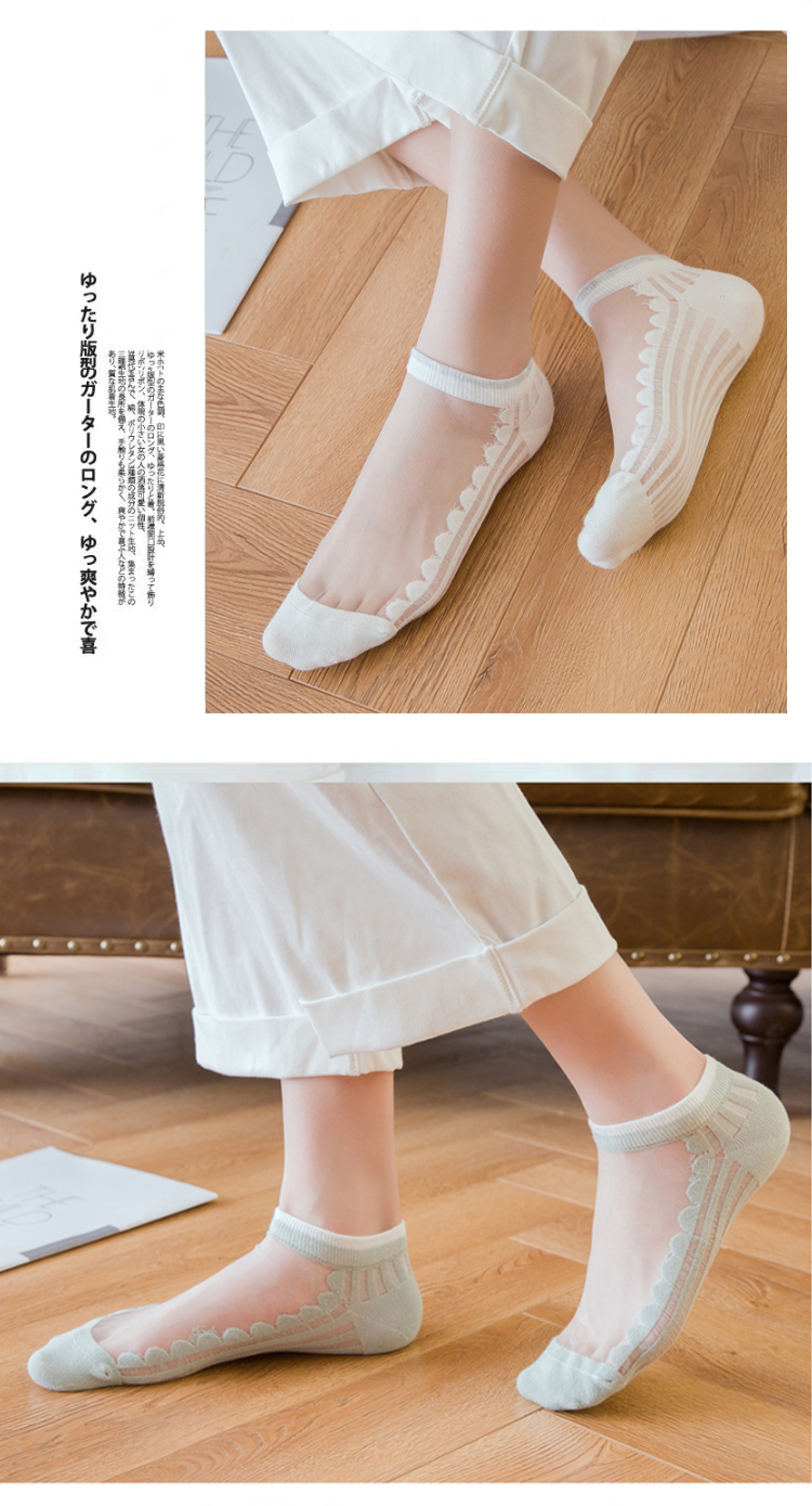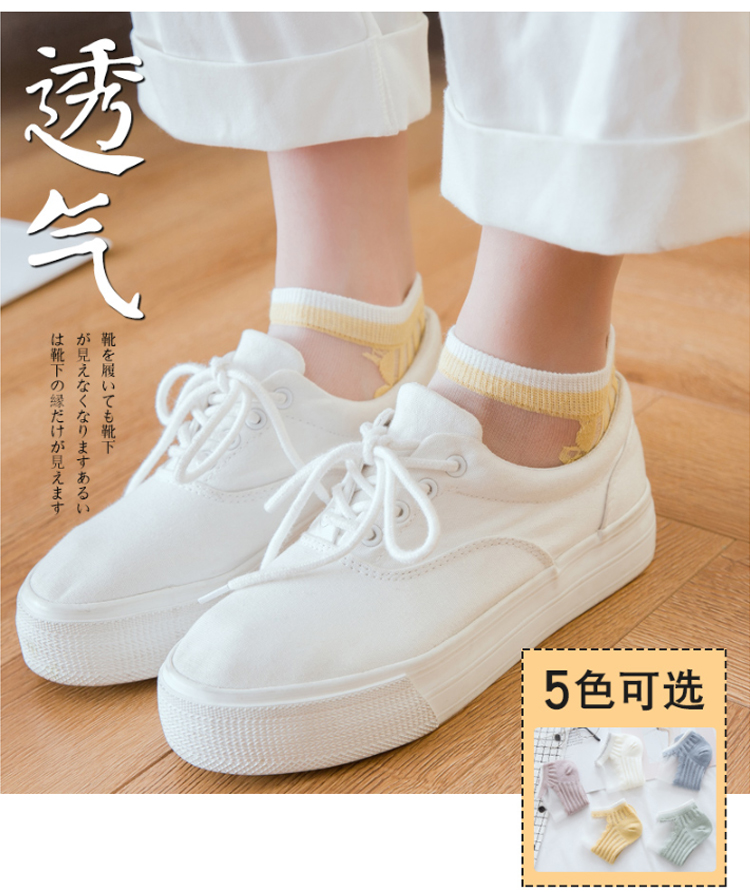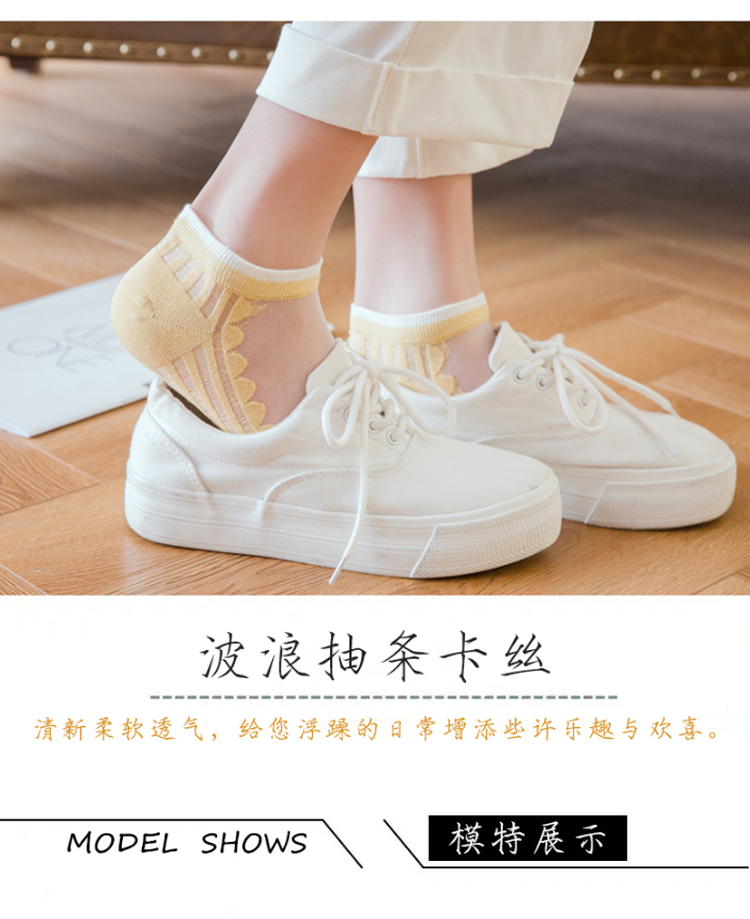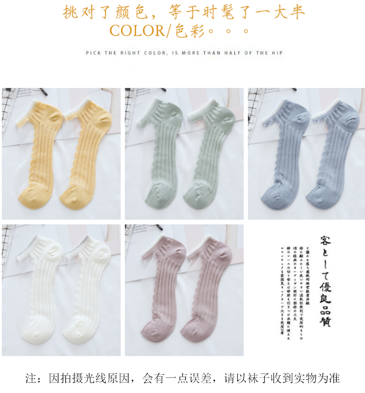 中国木几良品卡丝透气纯色花边女士船袜(如图5双装)