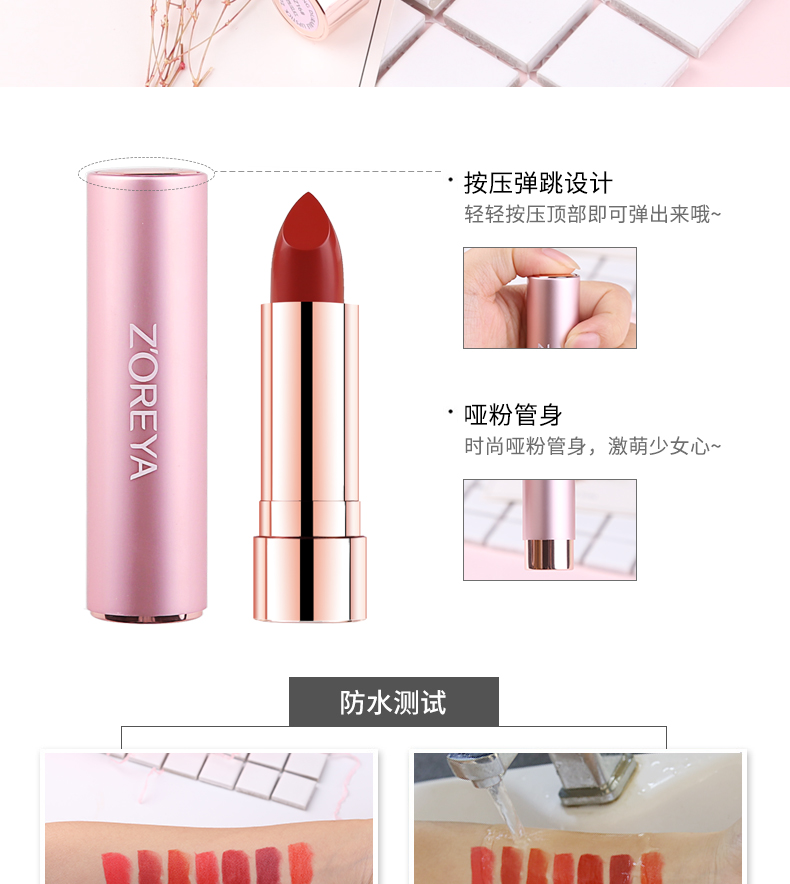您所在的位置:首页 > 美妆护肤  > 美妆护肤 > 美妆工具  > ZOREYA 口红持久保湿不脱色防水唇膏唇彩正品学生款可爱【珊瑚橘】