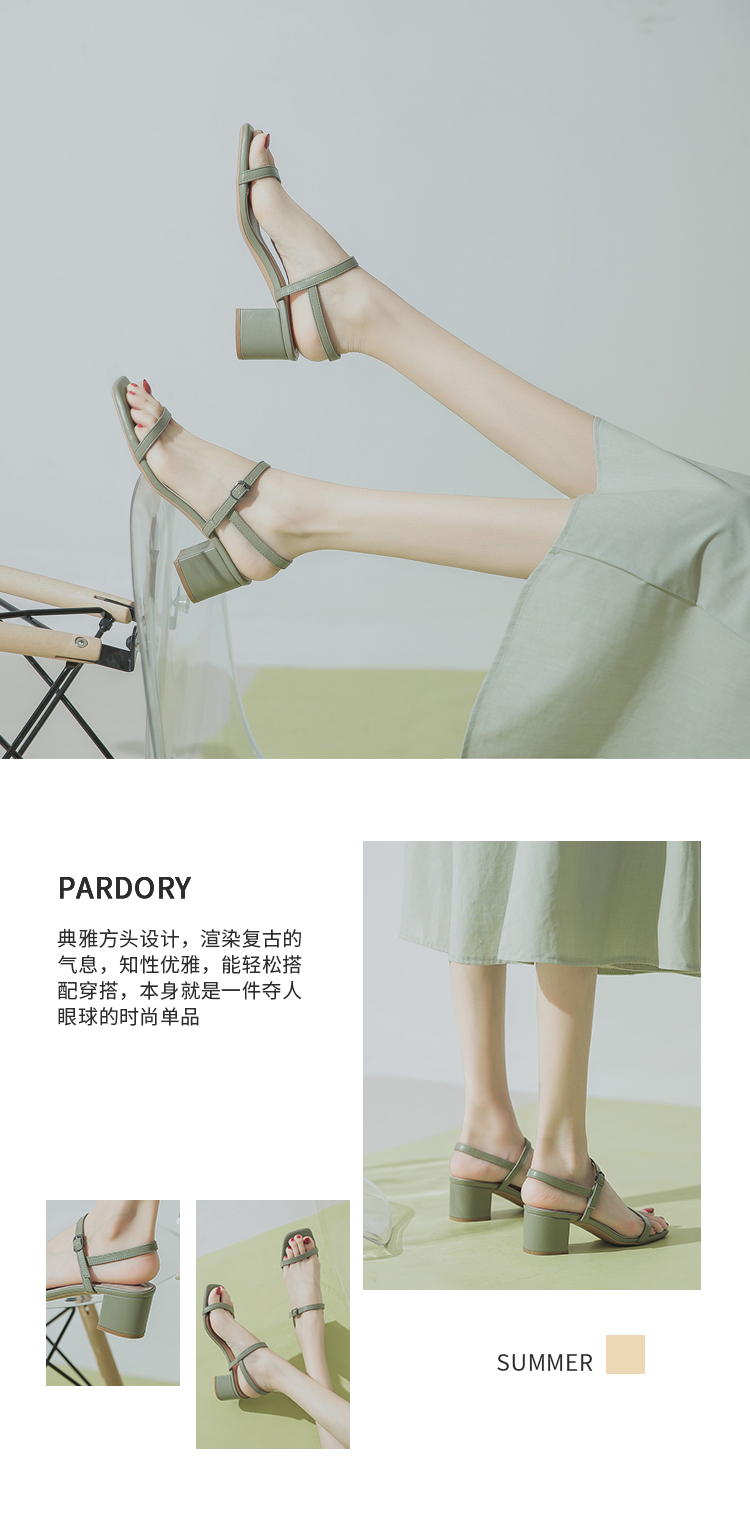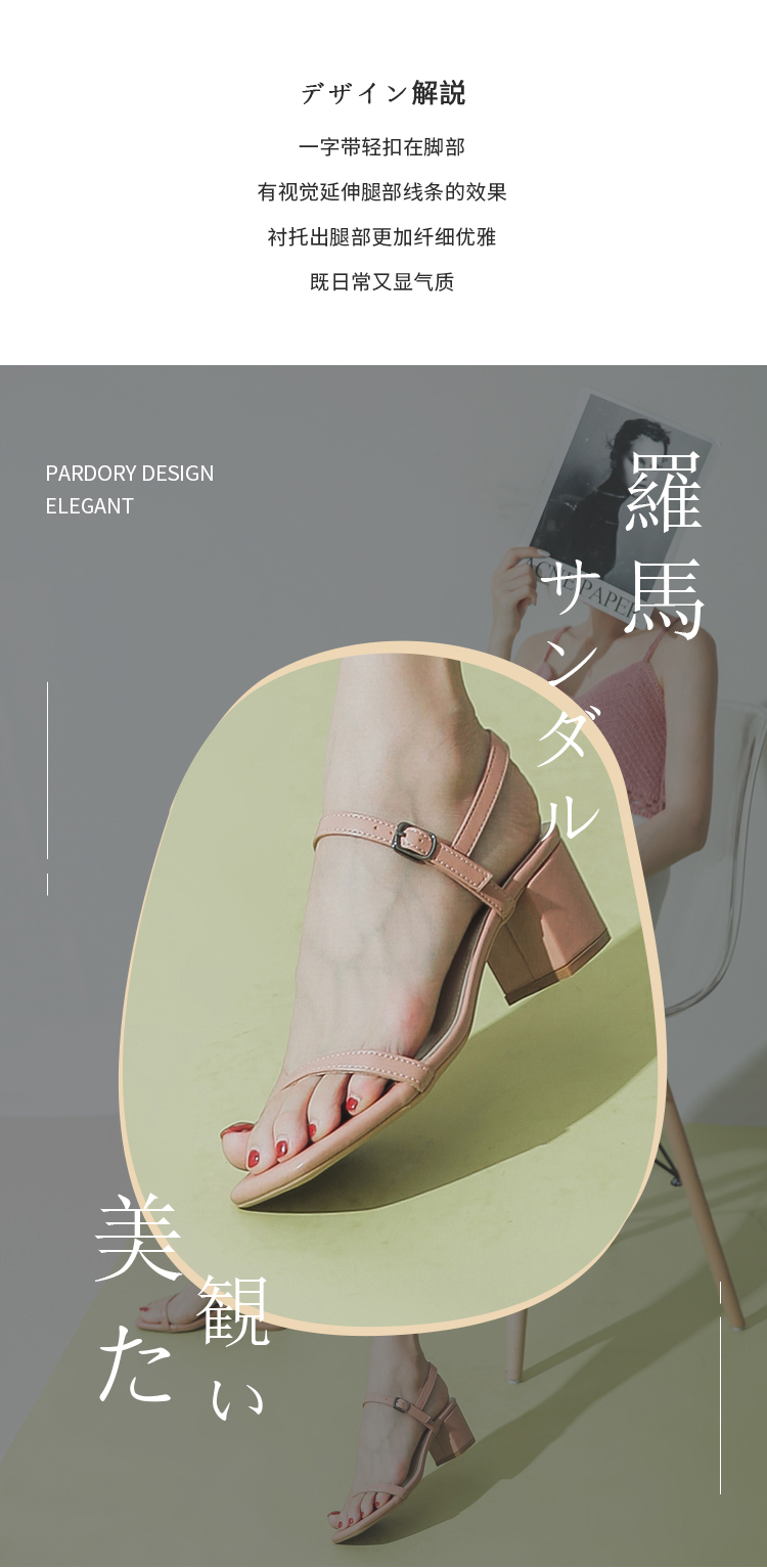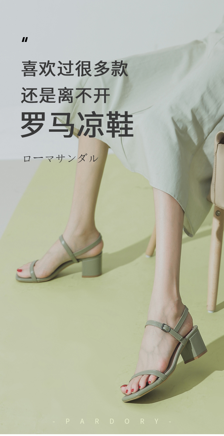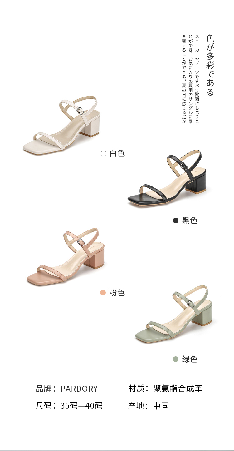 罗马凉鞋仙女风时尚百搭一字带粗跟凉鞋网红高跟鞋PDR128-W 白色35码