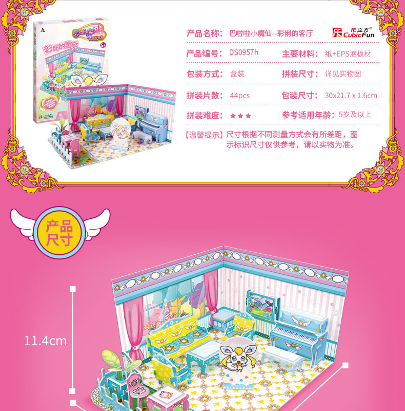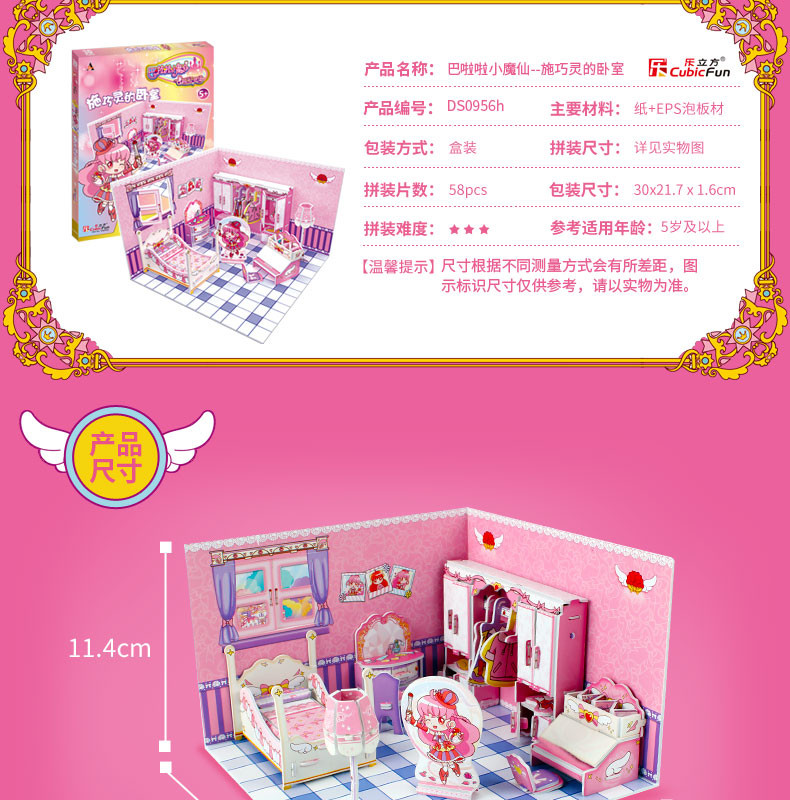 CUBICFUN乐立方 3D立体拼图 女孩创意益智礼物巴啦啦小魔仙色彩魔法玩具屋