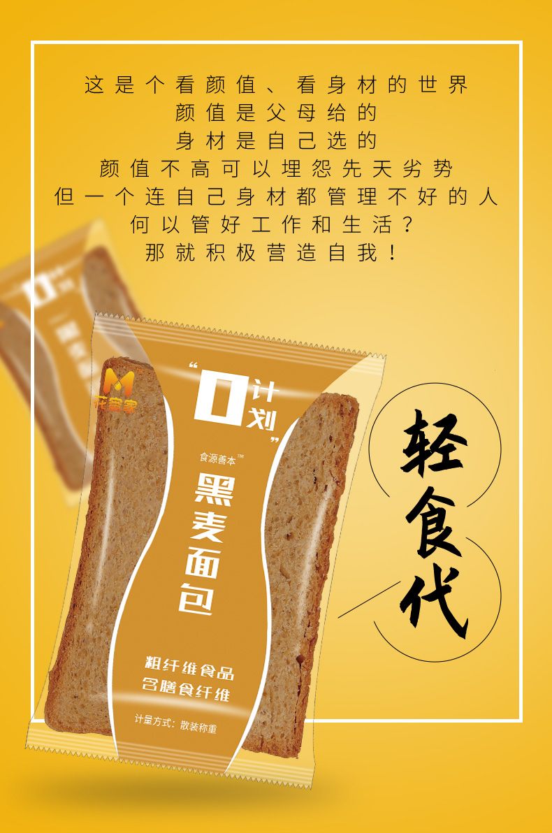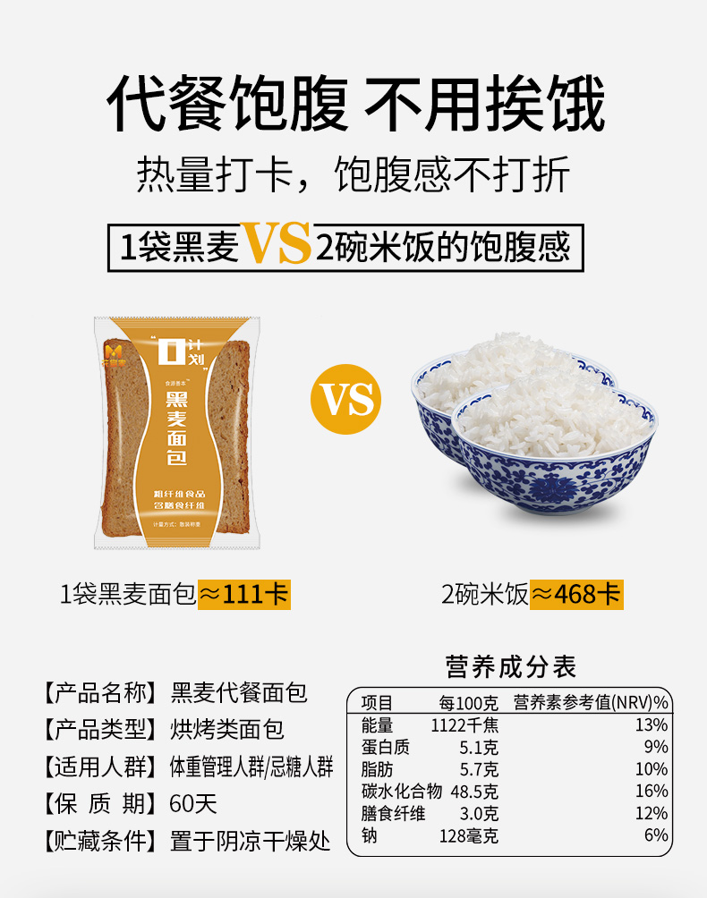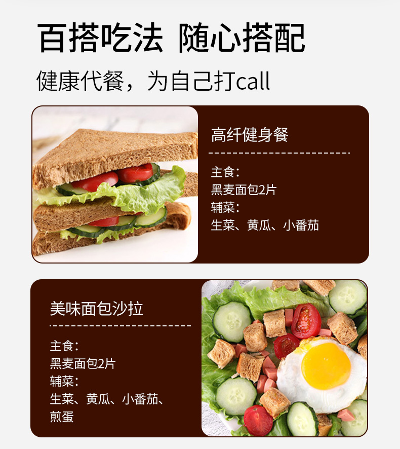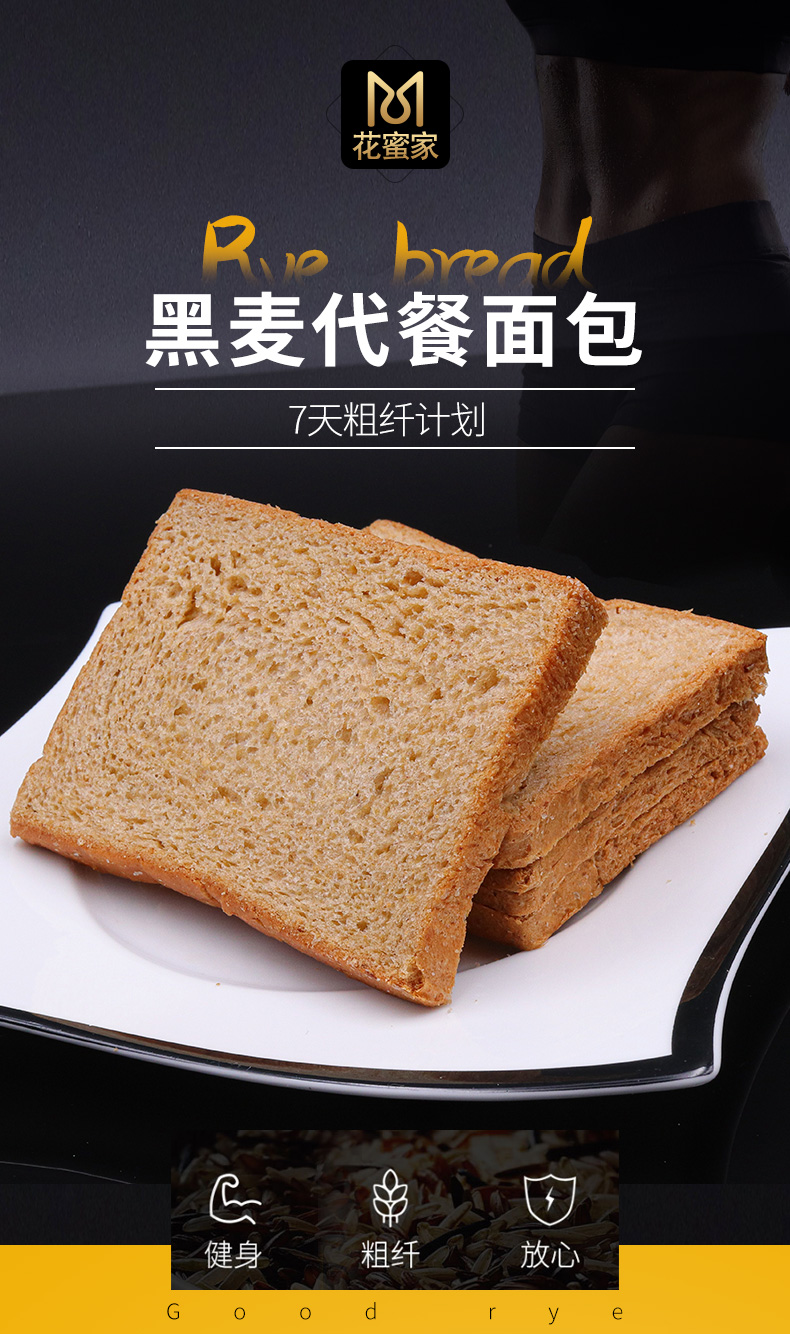 花蜜家黑麦面包 无糖精吐司粗粮早餐健康代餐切片零食面包 1000g/箱