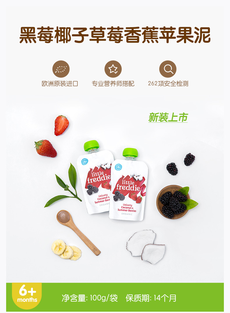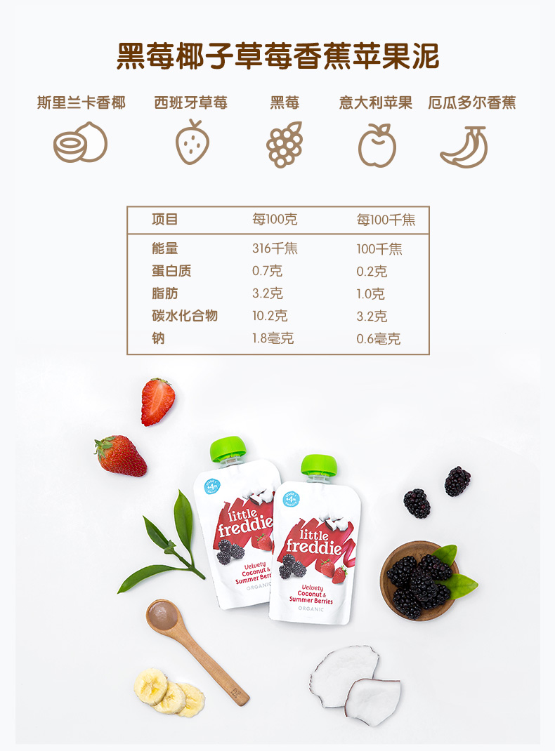Little Freddie小皮 黑莓椰子草莓香蕉苹果泥(新)