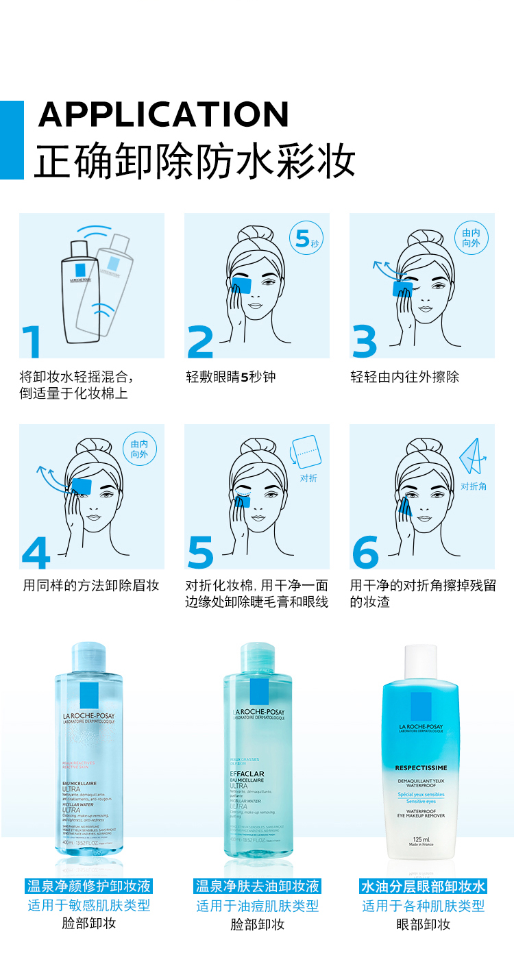 【法国直邮】理肤泉Laroche Posay 水油分层眼唇脸部温和深层清洁卸妆水125ml