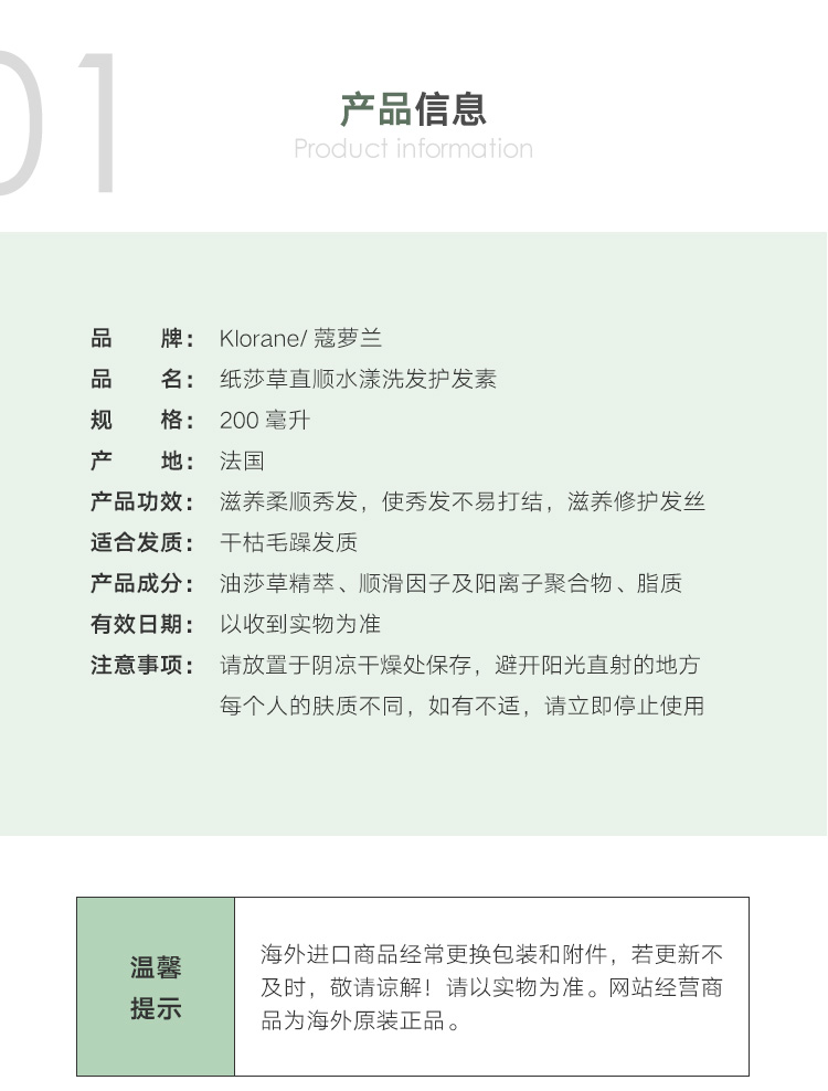 您所在的位置:首页 > 个人护理  > 洗发护发 > 护发素  > 【临期特价】蔻萝兰 纸莎草直顺水漾洗发护发素 200ml