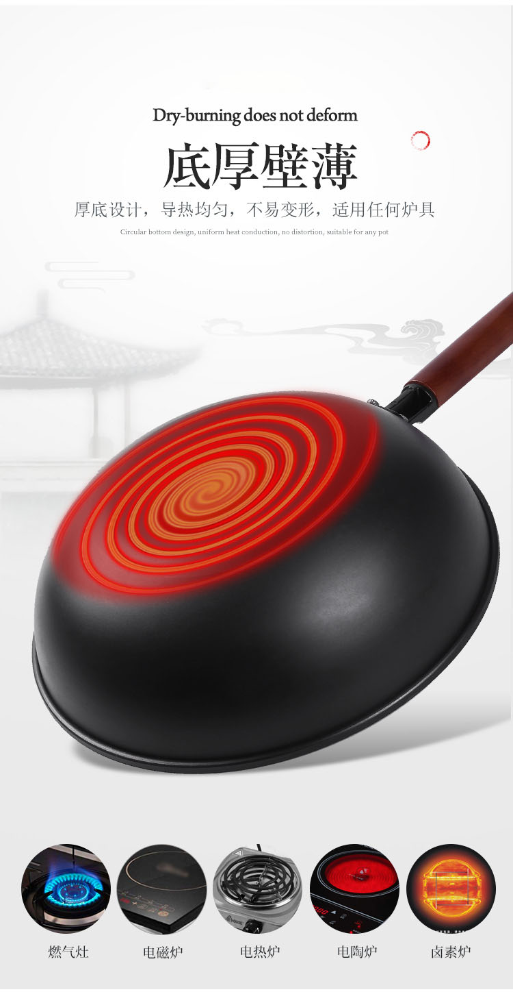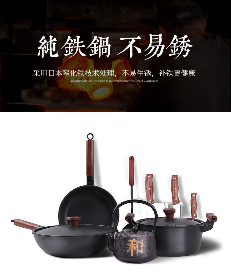 福丽友铁锅套组老式铁锅炒菜锅无涂层炒锅平底煎锅汤锅锅具套组