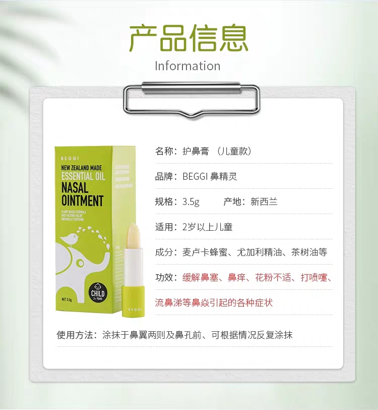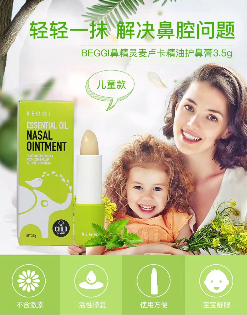【8.1-8.31】新西兰BEGGI 鼻精灵麦卢卡精油护鼻膏儿童款 3.5g送通鼻贴