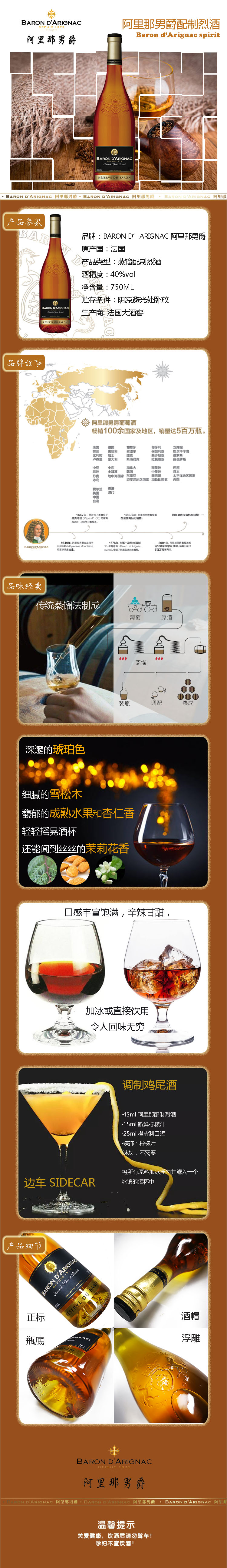 阿里那男爵配置烈酒法国进口白兰地750ML*1瓶