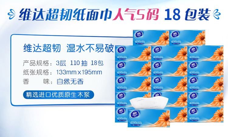 您所在的位置:首页 > 家庭清洁  > 清洁纸品 > 其它纸品/湿巾  > 维达抽纸家用纸巾3层批发整箱18包家庭装餐巾纸官方促销包邮