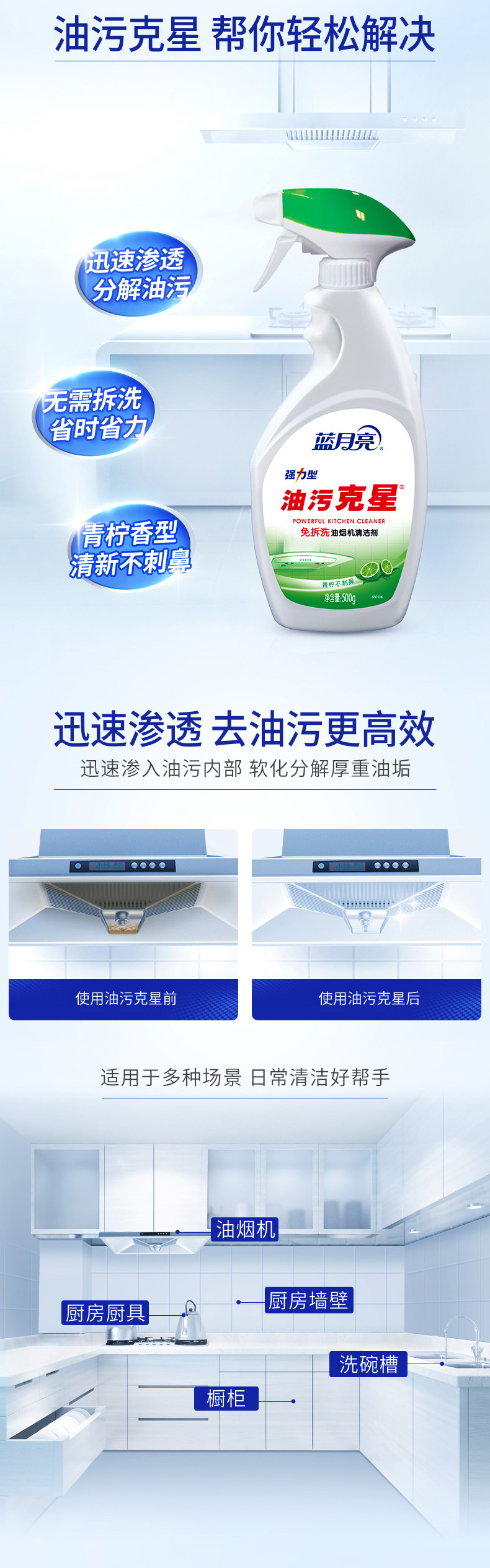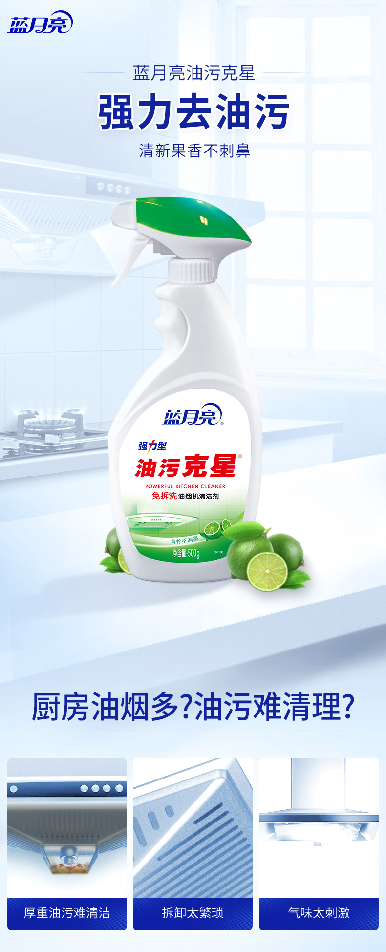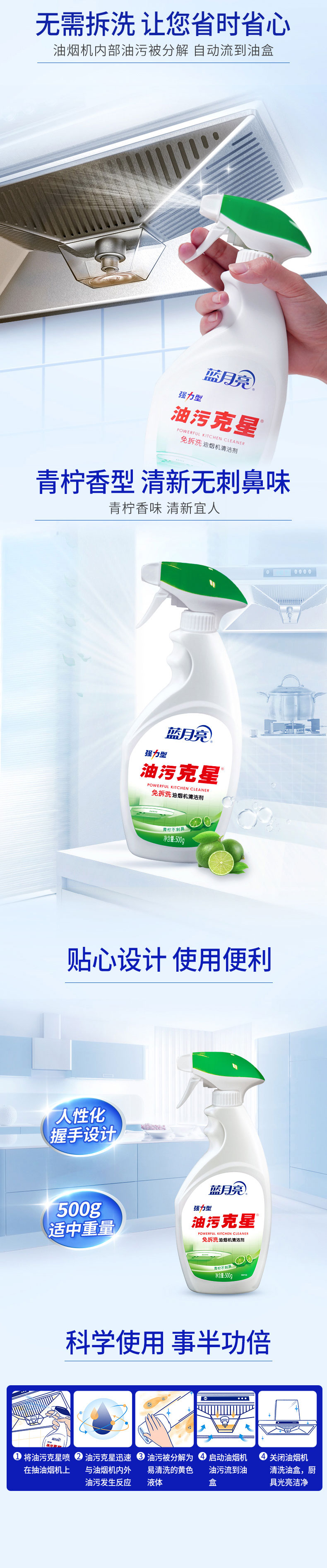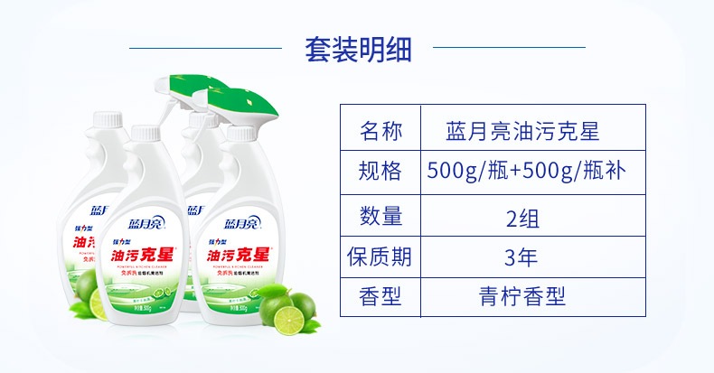 蓝月亮(青柠油污克星500g+青柠油污克星瓶补500g)*2