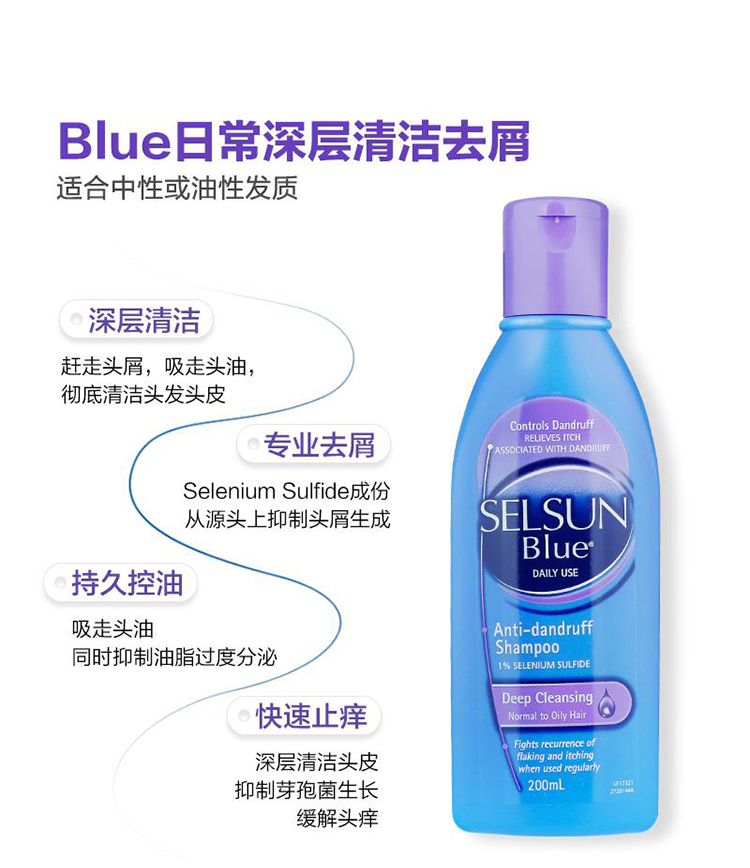 【澳洲直邮】Selsun Blue 特效去屑止痒无硅油洗发露 油性 200ml