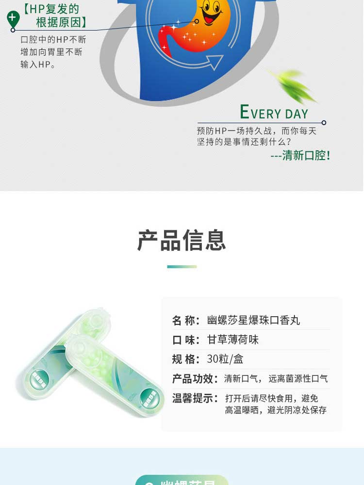 您所在的位置:首页 > 个人护理  > 口腔护理 > 其它口腔护理产品  > 幽螺莎星 5秒速溶 幽螺莎星爆珠口香丸 3.15g/盒【买3送1,买5送3】