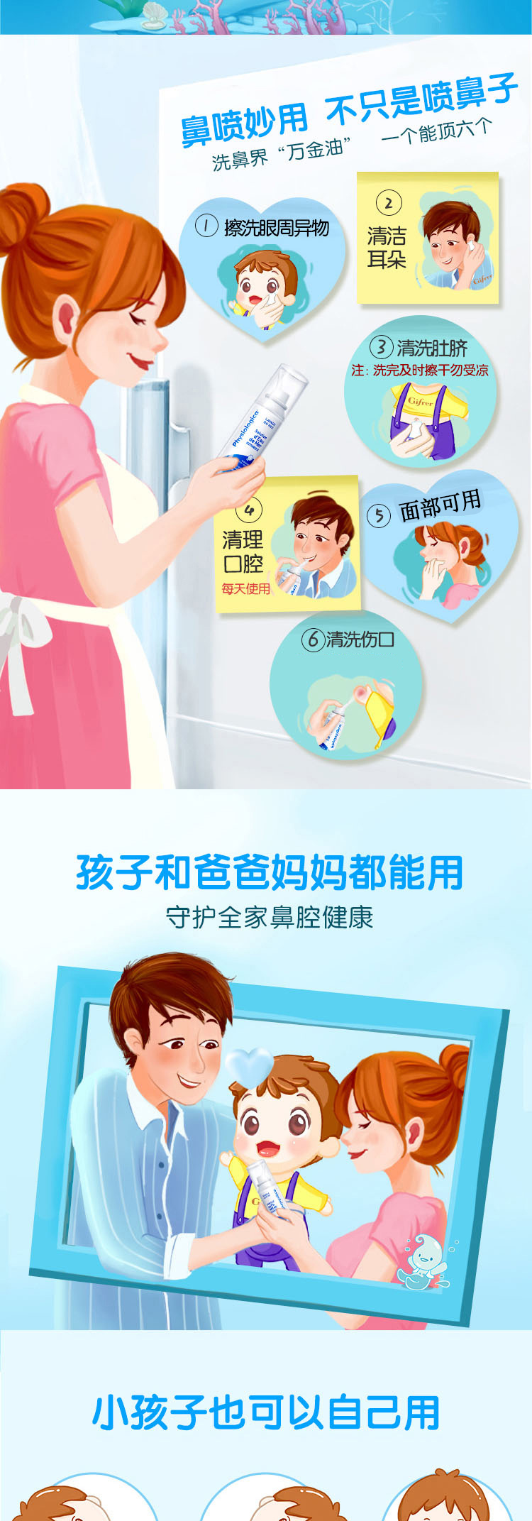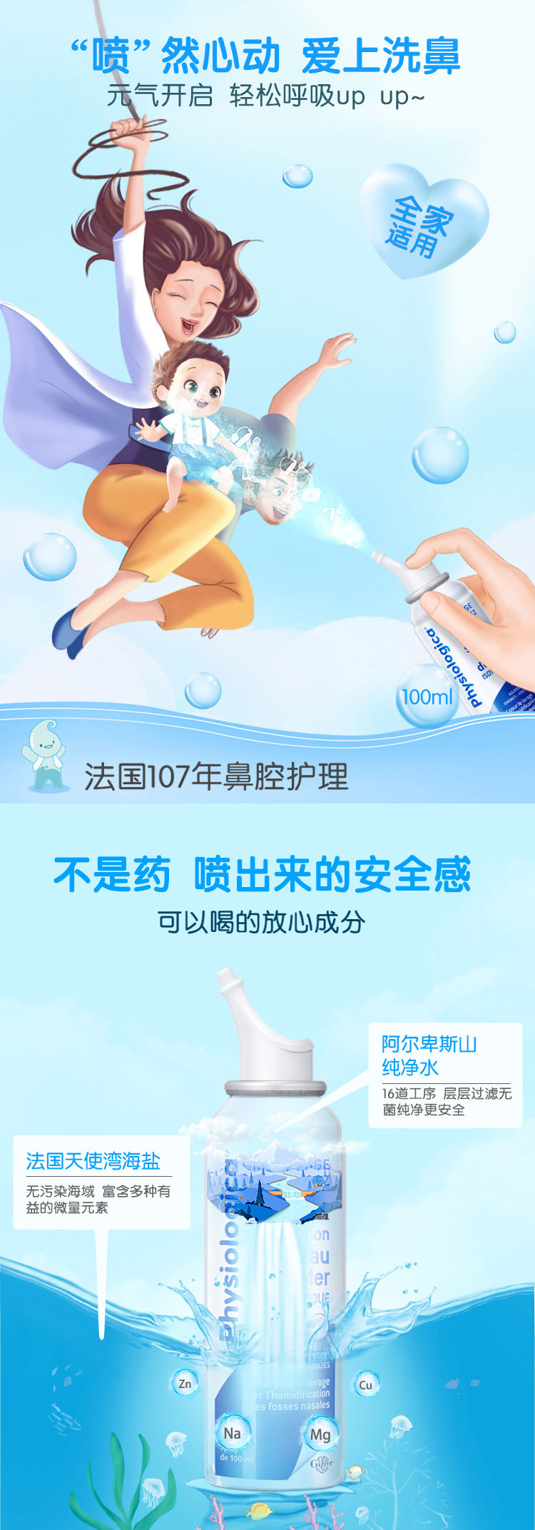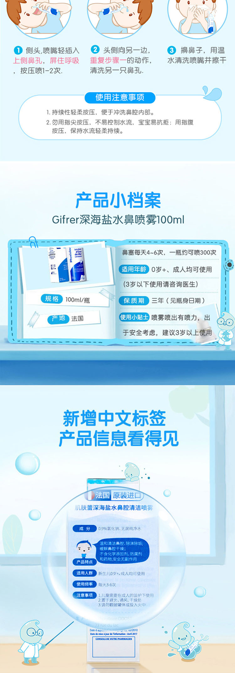 法国肌肤蕾Gifrer深海盐水鼻腔清洁喷雾儿童鼻塞洗鼻100ml