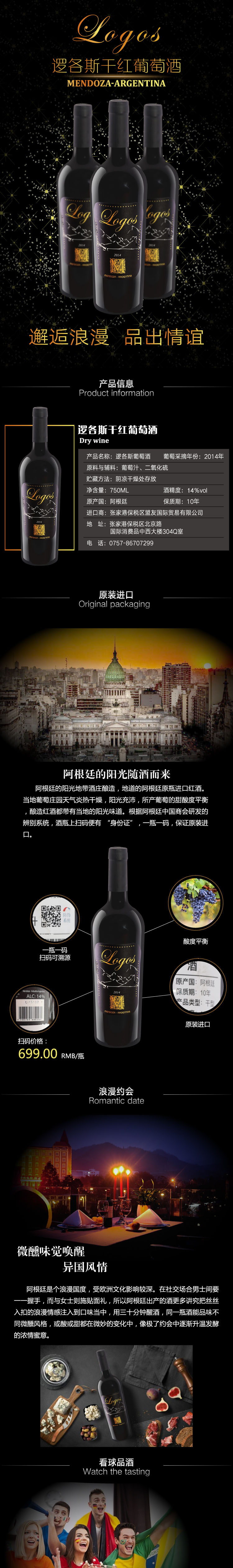 阿根廷原瓶进口【逻各斯】14度干红葡萄酒750ML/瓶